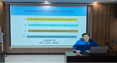 姜传银教授作题为《民族传统体育学方向国家社科申报策略》的专题讲座,重点分享了民族传统体育学方向国家社科申报的选题方向、选题创新、经验总结、未来展望等问题。