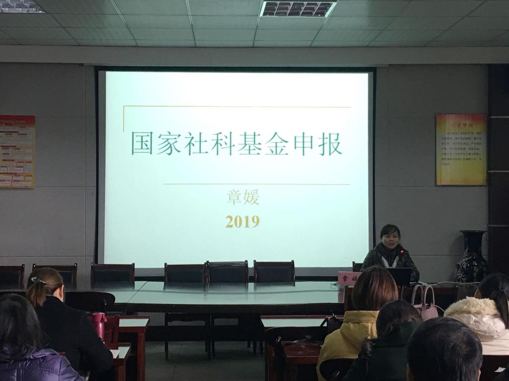 12月7日下午,合肥师范学院章媛教授到世界杯官网开展国家社科基金申报培训讲座。科研处、相关学院负责同志、博士、高级职称教师及预申报2020年国家社科基金教师参加培训会,会议由科研处副处长俞念胜主持。
