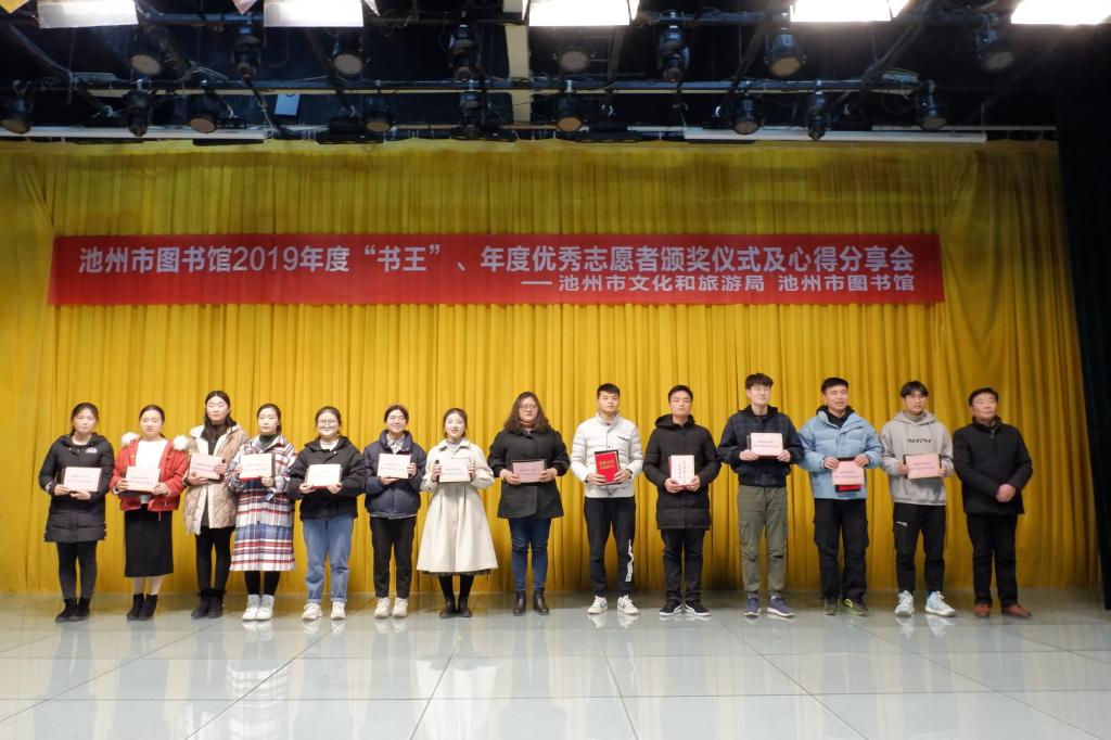1月1日下午,池州市图书馆2019年度优秀志愿者颁奖仪式及心得分享会顺利进行,世界杯官网学生曹旻雨等十名志愿者荣获池州市图书馆2019年度优秀志愿者称号。