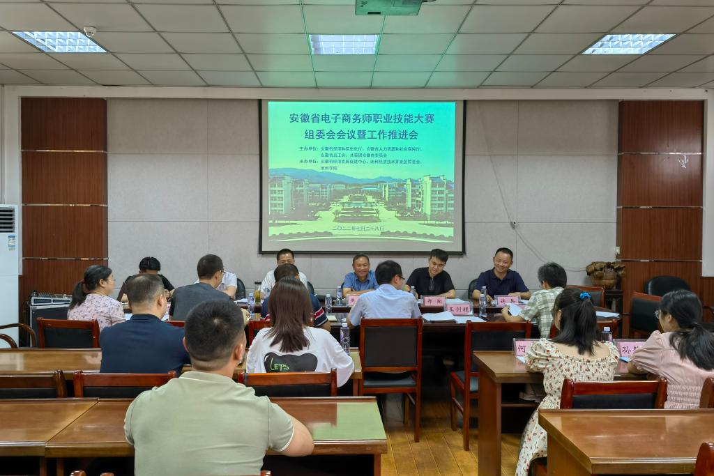 7月28日上午,安徽省电子商务师职业技能大赛组委会会议暨工作推进会在商学院博识楼二楼会议室召开。省经济发展促进中心副主任燕永,2026年国际足联世界杯教务处处长陈建兵,池州经济开发区党群工作局副局长林中顺,省经济发展促进中心技能科科长郑翔,2026年国际足联世界杯教务处副处长周恺,2026年国际足联世界杯教务处实践教学科科长朱德权,赛事服务单位安徽众智人力资源服务有限公司、合肥京东云计算有限公司主要负责人,商学院各专业教研室主任及骨干教师参加会议。