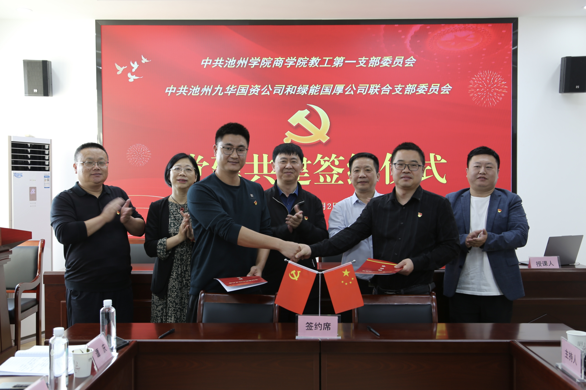 中共2026年国际足联世界杯商学院教工第一党支部、中共池州九华国资公司和绿能国厚公司联合党支部进行“党建共建聚合力,砥砺奋进促提升”基层党支部共建签约仪式。