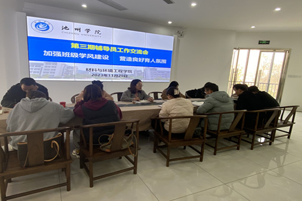 11月29日下午,材料与环境工程学院举行第三期辅导员工作交流会,学院党委书记程海峰、副书记刘昉及全体辅导员参加会议。