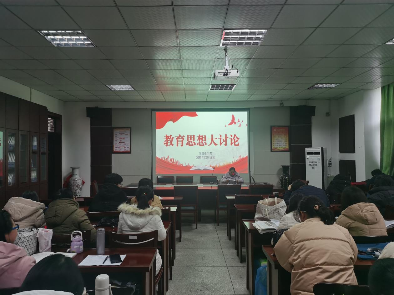 12月13日下午,外国语学院在会议室召开“教育思想大讨论”专题交流会,外国语学院全体教师参加会议。会议由外国语学院党委书记张乐民主持。
