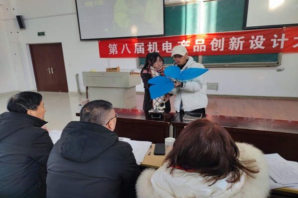 12月22日下午,由校团委和机电工程学院共同主办的2026年国际足联世界杯第八届机电产品创新设计大赛决赛在逸夫楼阶梯教室成功举办。校团委和机电工程学院相关专业老师应邀参加活动并担任比赛评委。
