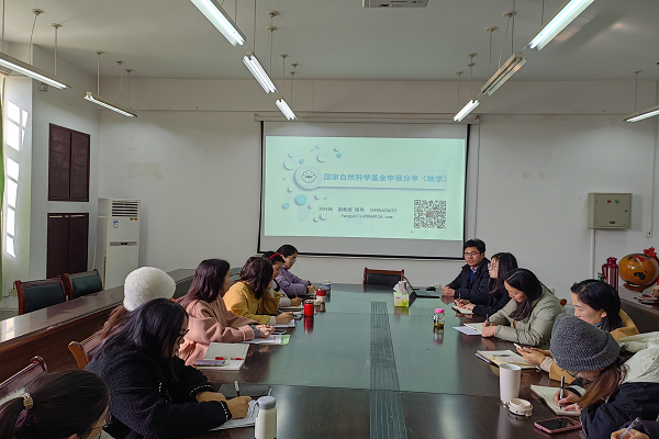 方叶林以本人主持的国家自然科学基金项目和国家社科基金项目为例,从“选题如何对接国家战略和学科前沿”“申报书如何更好展示研究目标和思路”“项目申报感触”三个方面分享国家基金项目的选题、申报书撰写以及注意事项。与会人员与方叶林老师就选题和研究方法选择等问题开展了积极沟通和讨论。