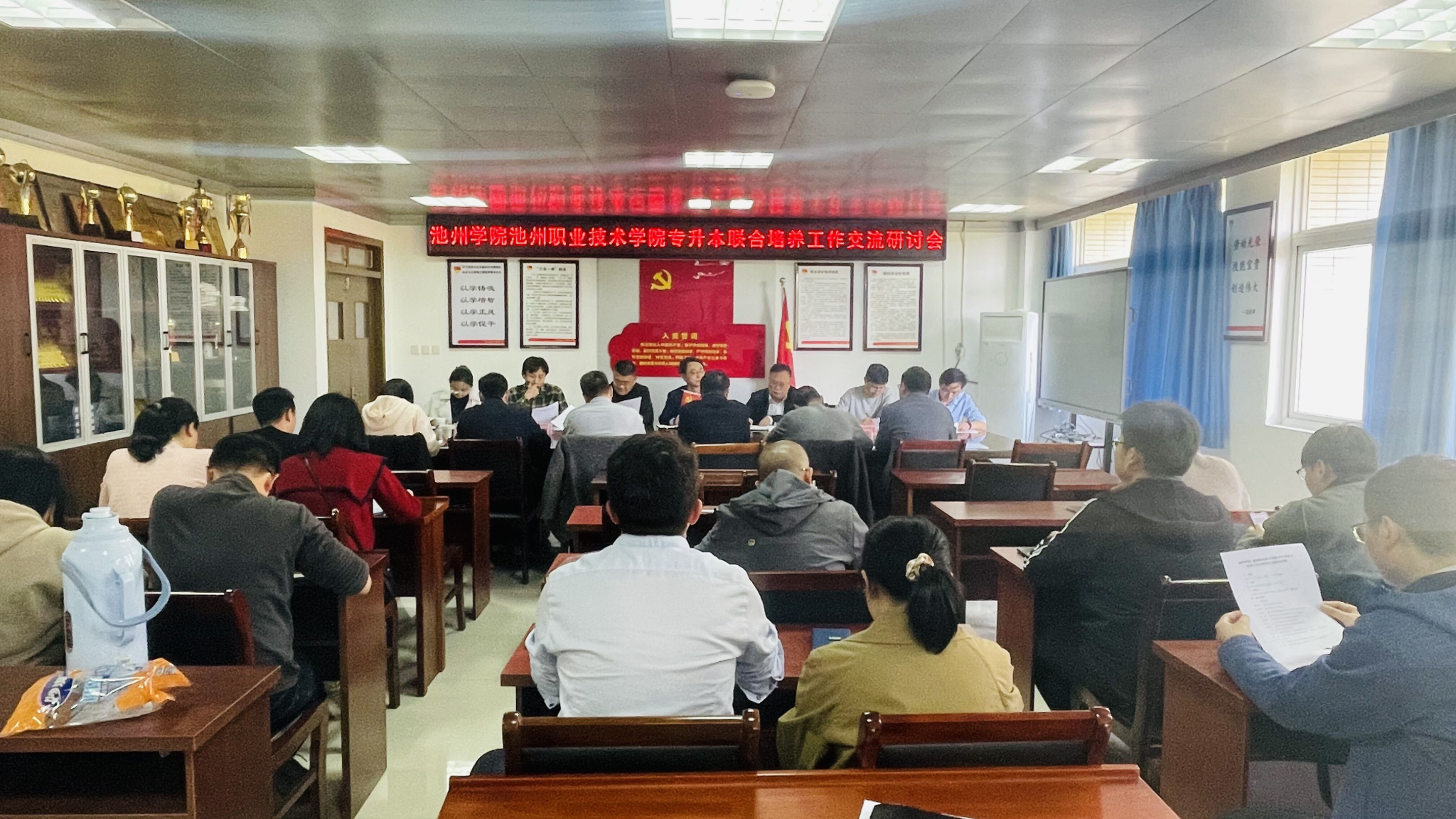 为做好2024届联合培养专升本学生的毕业与学位资格审核、毕业论文(设计)与第二课堂、就业等工作,3月29日,教务处会同学生处、团委、机电工程学院、旅游与历史文化学院,赴池州职业技术学院进行交流研讨。