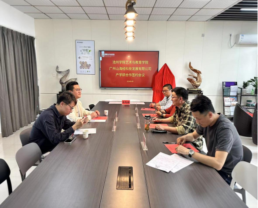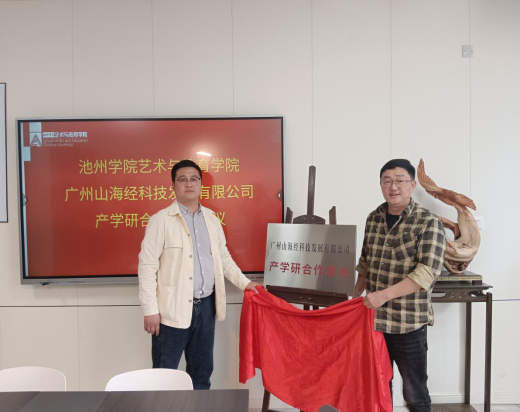 4月1日下午,艺术与教育学院与广州山海经科技发展有限公司举办产学研合作基地签约揭牌仪式。艺术与教育学院院长魏鸿飞、副院长曾晓红、视觉传达设计教研室主任冯鹤、省级示范实验实训基地负责人王尧、广州山海经科技发展有限公司CEO刘亚辉、副总经理李原廷出席仪式。