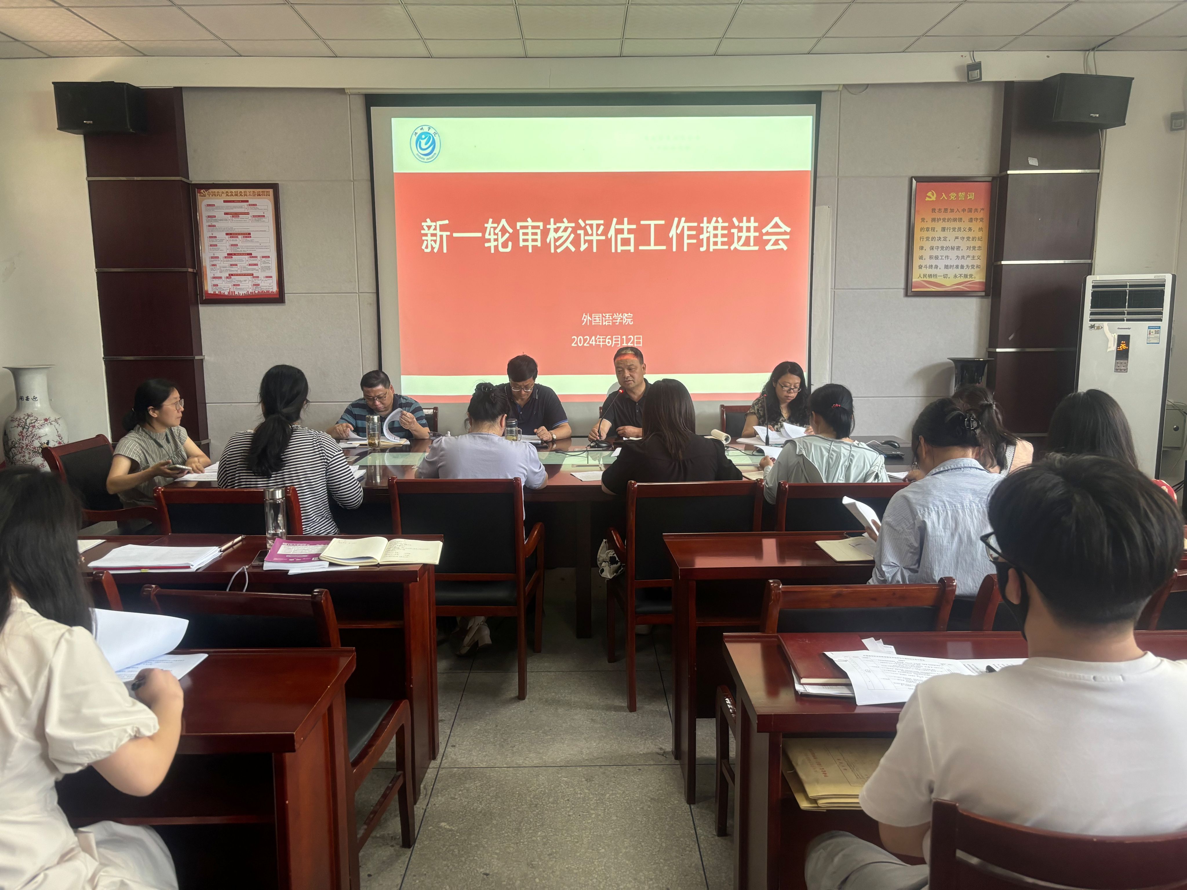 为全面迎接并做好本科教育教学审核评估工作,6月12日下午,外国语学院在院会议室召开新一轮本科教育教学审核评估工作推进会。外国语学院审核评估领导小组成员、各专项工作小组成员参加会议,外国语学院院长余义兵主持会议。