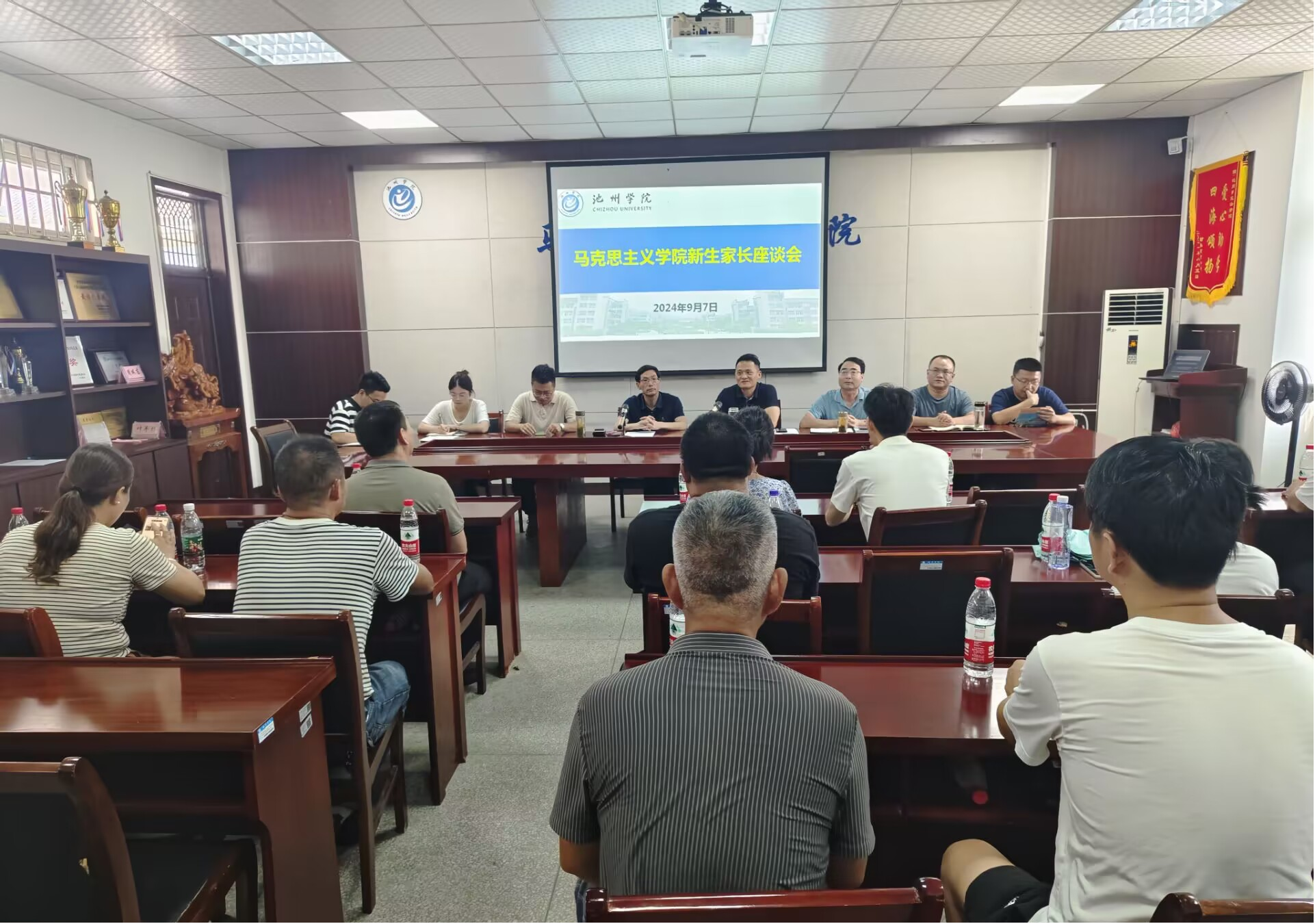 9月7日下午,马克思主义学院在博爱楼二楼会议室举办2024级新生家长座谈会。学院党委书记俞念胜主持会议。副院长鲍红信、副书记周佩东、行政人员及新生班辅导员参加会议。