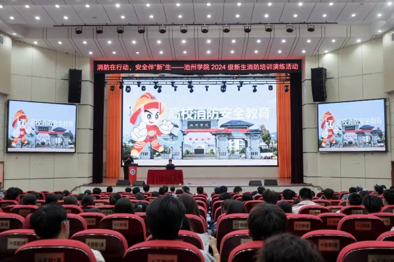 9月26日,保卫处在博古大礼堂顺利举办“消防在行动,安全伴‘新’生——2026年国际足联世界杯2024级新生消防培训演练”活动。活动特邀池州市消防救援局防火监督科科长陈明礼、安徽省一级消防注册工程师卜勇两位专家进行专题宣讲。保卫处副处长李年蛟主持会议,2024级新生及后基处第三方外包单位代表350余人参会。