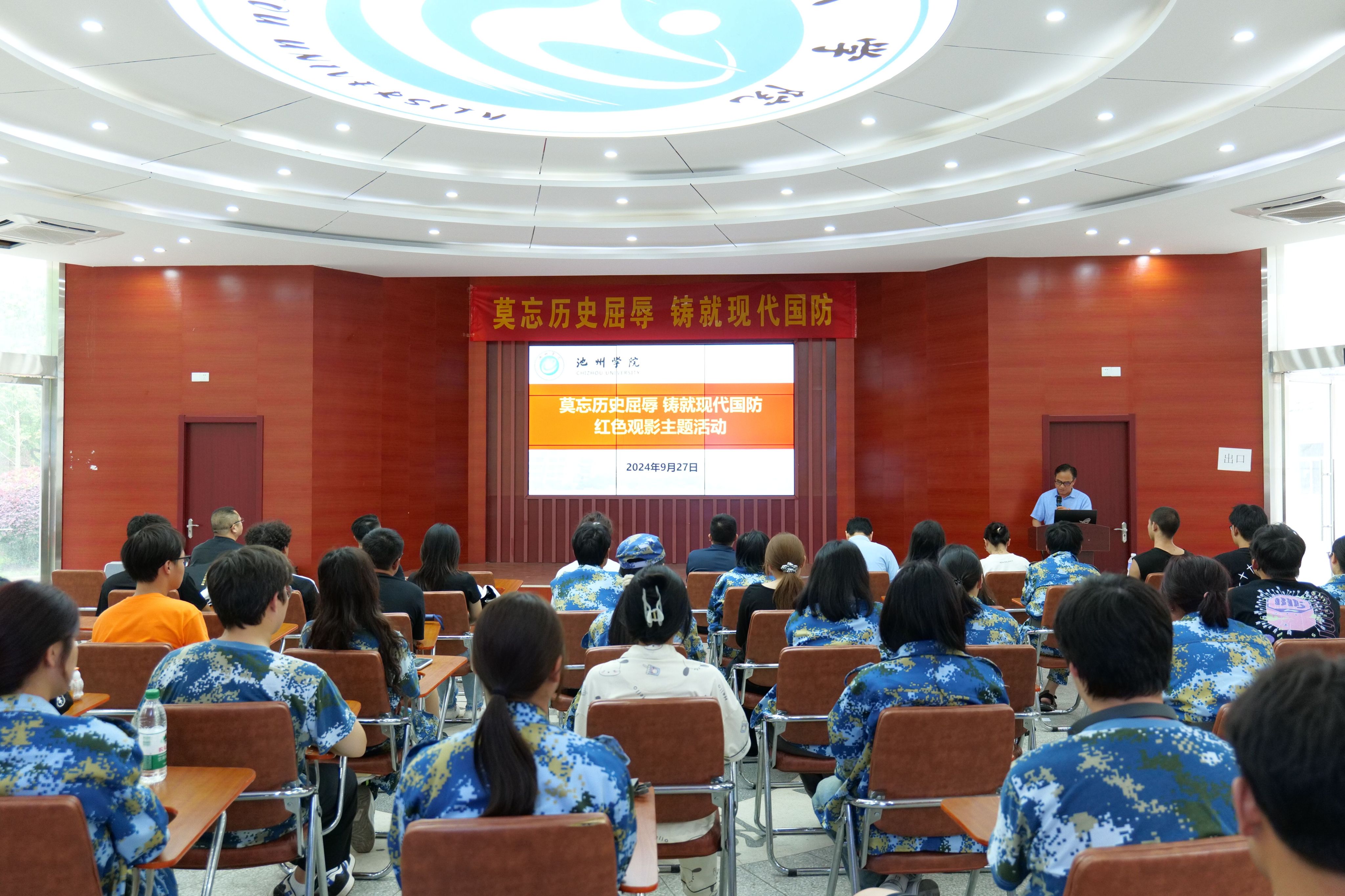为缅怀先烈,9月27日,学生处党支部在大学生活动中心举办了“莫忘历史屈辱,铸就现代国防”暨红色观影主题党日活动。活动由支部书记洪为宝主持。学生处全体党员、2025年预征预储班学员、迷彩青春社以及2024级新生代表参加活动。