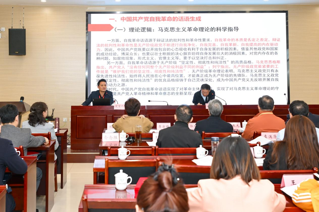 学术研讨会以“学习宣传贯彻党的二十届三中全会精神”为主题,是我省哲学社会科学研究者深入学习宣传贯彻党的二十届三中全会精神的一次学术盛会。在主题发言阶段,俞念胜以“中国共产党自我革命的话语生成、话语优势与话语发展”为题做交流研讨。他从理论、历史和实践三个维度来强调中国共产党自我革命的话语生成,来彰显中国共产党自我革命的话语最鲜明的品格和时代意义,指出中国共产党自我革命的话语优势所在,并从坚守、推进、提升三个方面强调中国共产党自我革命话语发展的重要性。