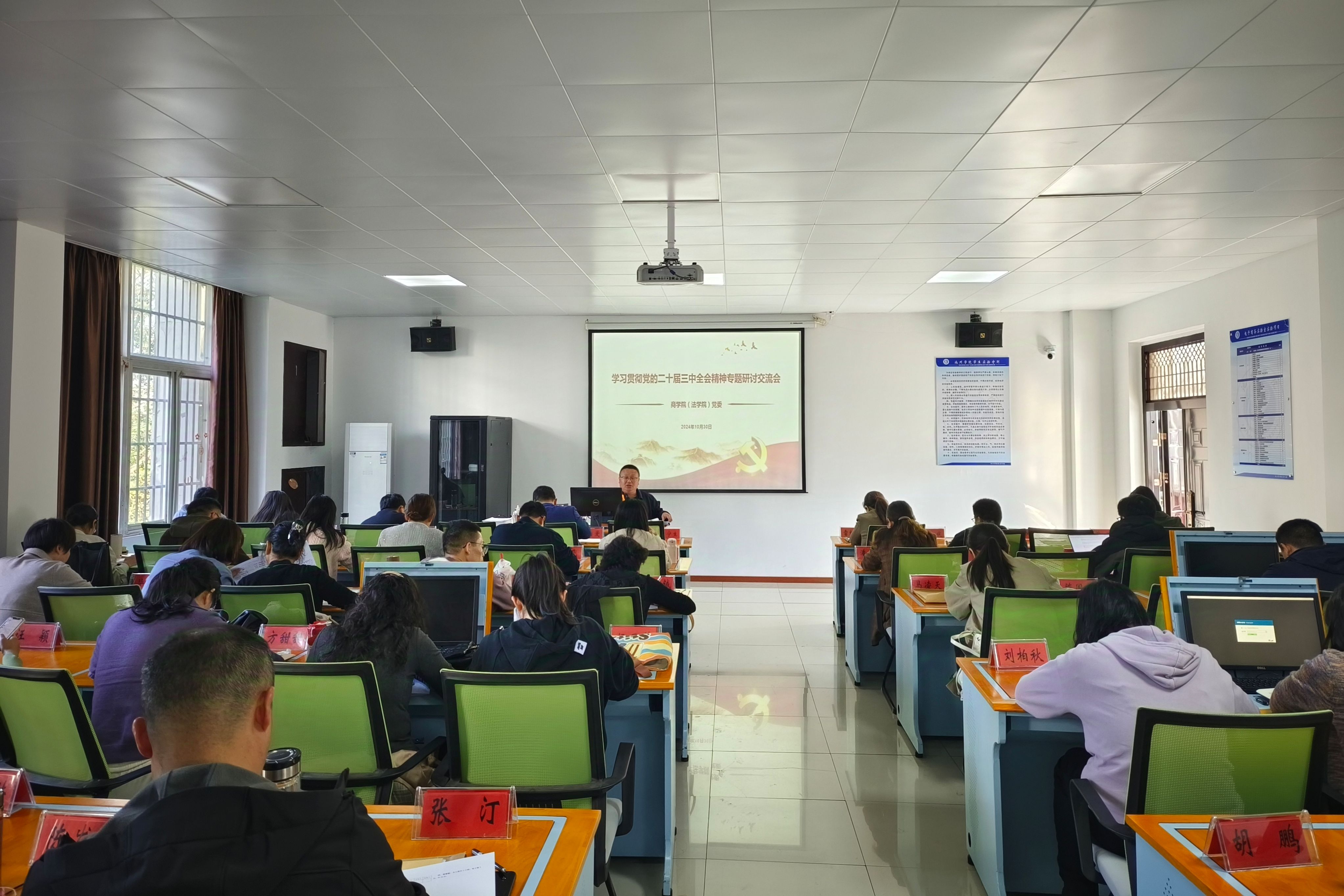 为深入学习领会党的二十届三中全会精神,推动学院改革和高质量发展,10月30日,商学院(法学院)召开学习贯彻党的二十届三中全会精神专题研讨交流会。会议由院党委书记肖宁生主持,全体教职工参加学习研讨。