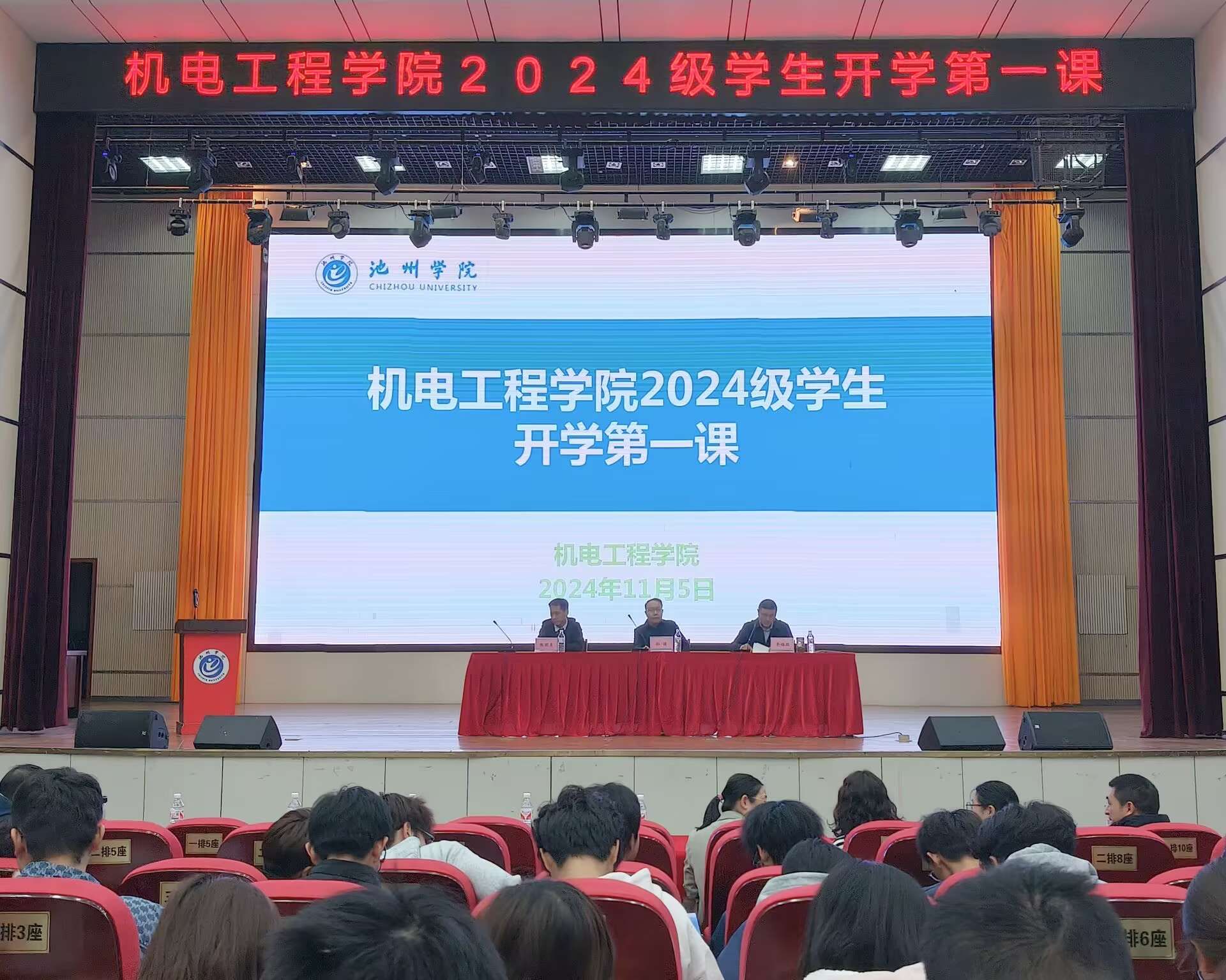 11月5日,机电工程学院在博古楼礼堂举行2024级学生“开学第一课”。学院院长孙佐、党委副书记余钰琪、副院长张国青出席活动。活动由余钰琪主持。