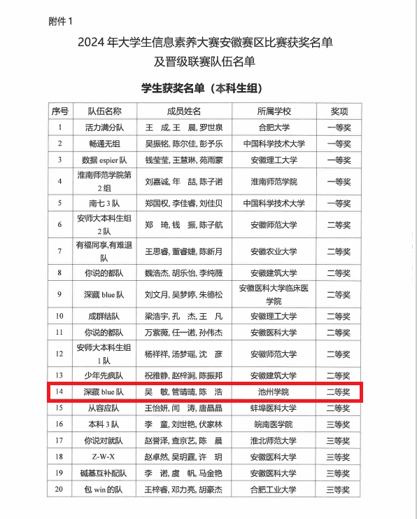 大赛于今年8月份正式启动,经过层层选拔和刻苦训练,世界杯官网由23级土地资源管理2班吴敏、23级汉语言文学2班管晴晴和计算机与科学技术2班陈浩三名同学组成的“深藏blue”队,代表学校参与省决赛。决赛中,参赛选手凭借敏锐的信息意识、熟练的信息检索技巧以及准确的信息分析和处理能力,取得了安徽赛区二等奖的优异成绩。