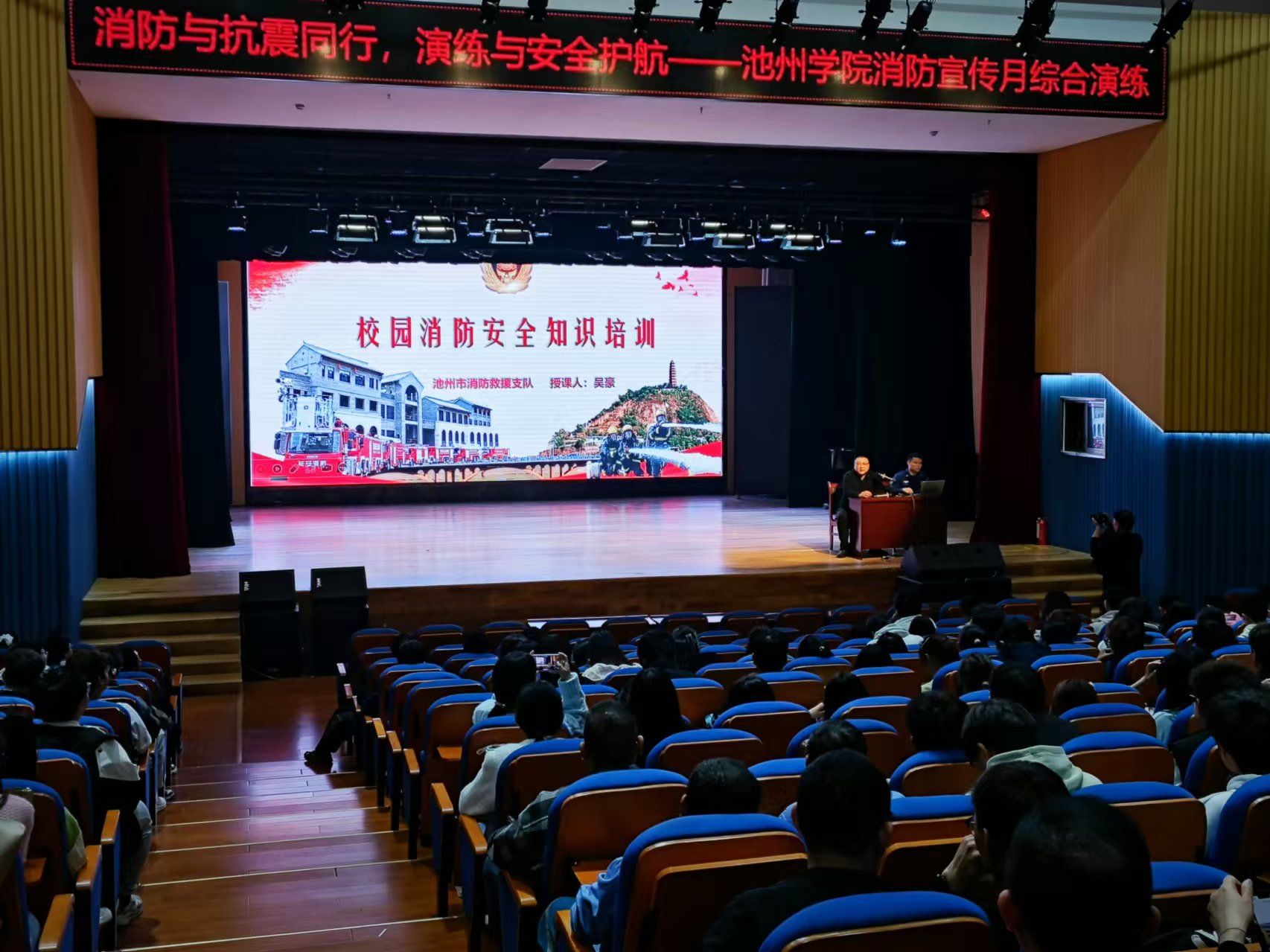 活动特邀池州市消防救援支队吴豪同志、省一级消防工程师阮洋为大家作专题培训。吴豪结合近年来校园火灾的典型案例,阐述了火灾的危害和预防火灾的重要性,并重点讲解了教室、实验室、宿舍、礼堂等场所火灾的成因,如何正确使用消防器材,如何扑救初期火灾以及如何在火灾中迅速逃生等消防安全知识。阮洋介绍了地震的相关知识及避险方法。