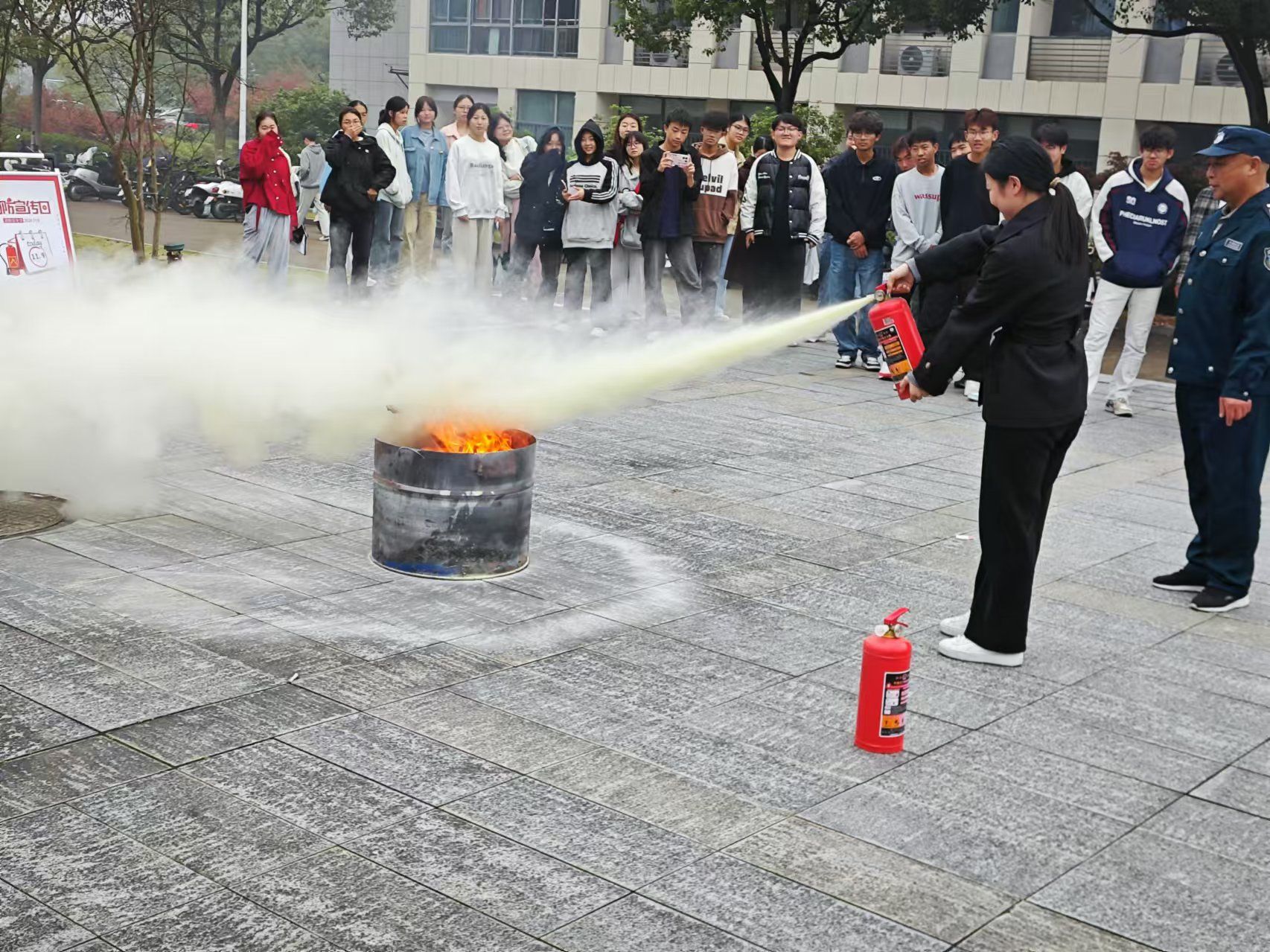 在灭火实操环节,保卫处工作人员现场讲解并演示了灭火器及消防水带的正确使用方法,并请师生代表亲自操作,使大家熟练掌握了灭火技能。现场还设置了消防安全知识展板,向师生普及火灾预防、逃生自救等知识,进一步增强了师生的消防安全意识。