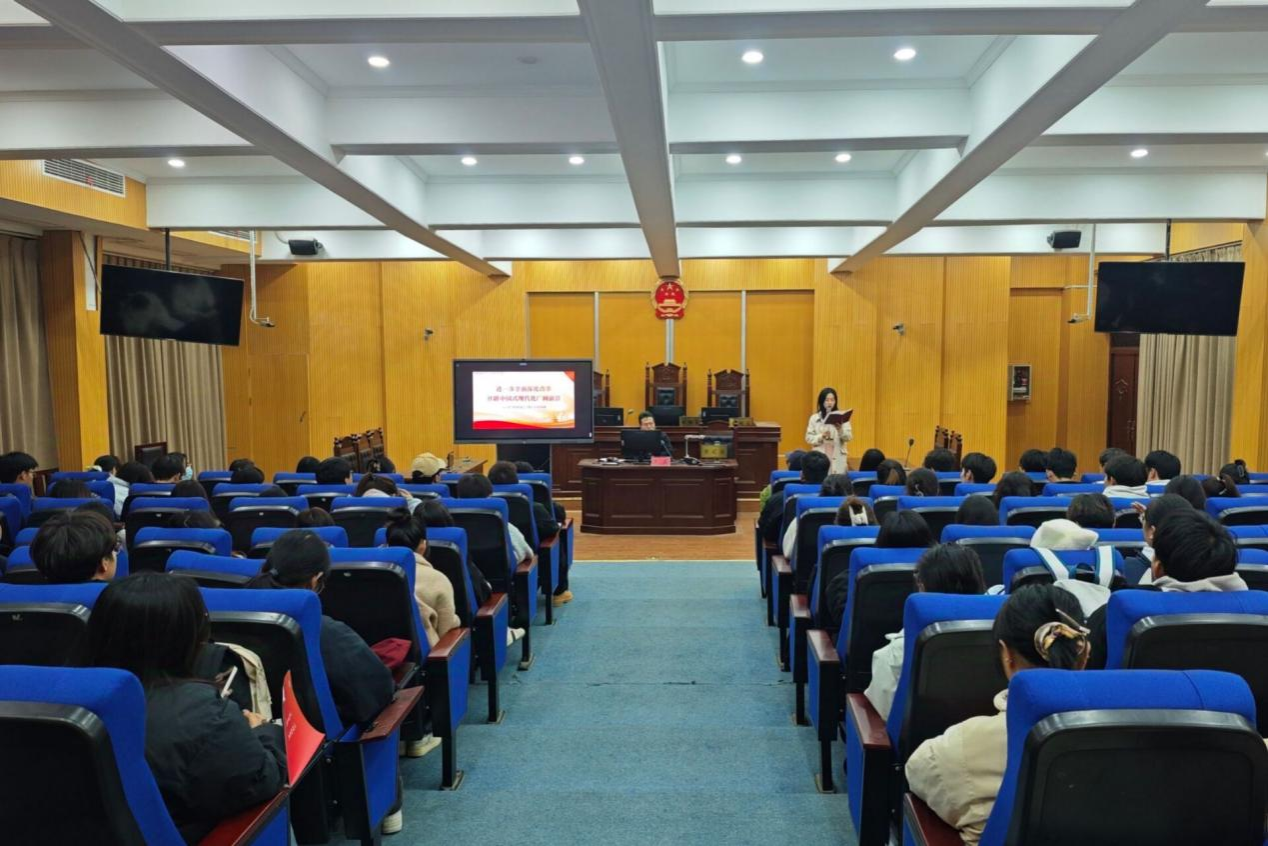 马克思主义学院思想政治教育教研室负责人吴磊以《进一步全面深化改革开辟中国式现代化广阔前景》为题进行专题授课。他结合习近平总书记关于全面深化改革的一系列新思想、新观点、新论断,全面系统阐述了进一步全面深化改革的重大成就、总目标和原则、重大举措和根本保证,进一步加深了同学们对党的二十届三中全会精神的理解和把握。他强调,党的二十届三中全会是在以中国式现代化全面推进强国建设、民族复兴伟业的关键时期召开的一次十分重要的会议,希望广大青年学子认真学习贯彻全会精神,努力学好专业知识,不断提升综合素质,以实干担当把宏伟蓝图变为美好现实。
