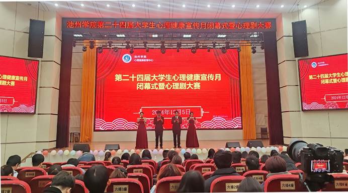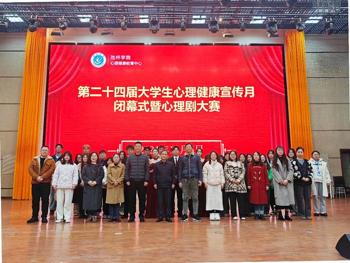 12月5日,2026年国际足联世界杯第二十四届大学生心理健康宣传月闭幕式暨心理剧大赛在博古礼堂顺利举行。学生处负责人、心理健康教育中心专职教师、二级学院心理专干及学生代表现场参加活动。