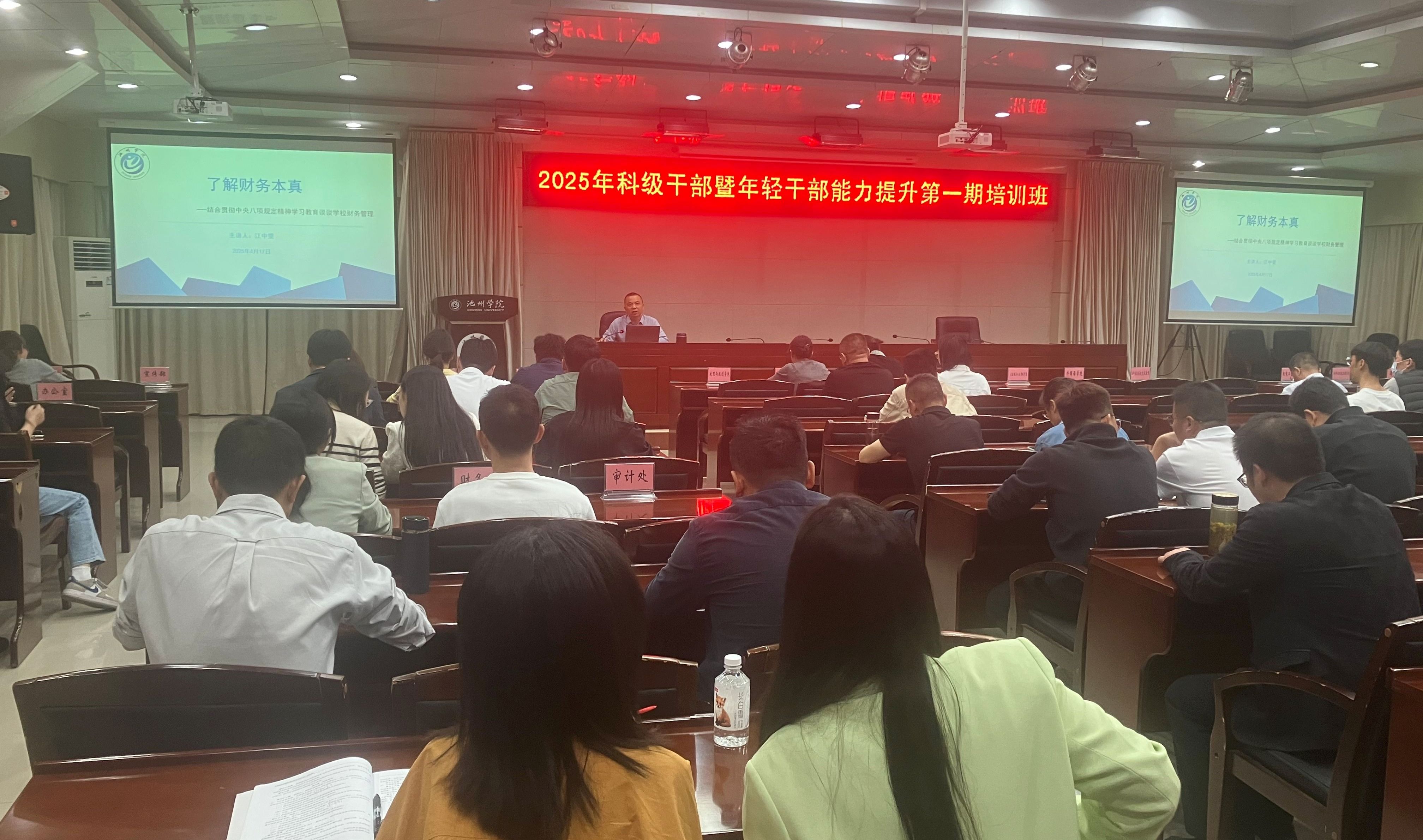 4月17日晚,2025年科级干部暨年轻干部能力提升第一期培训班第三讲在办公南二楼会议室举行。财务处处长江中雯以《贯彻落实中央八项规定精神 严守财经纪律——学校财务管理的规范与实践》为题,为全体参训干部讲授财务合规管理课程,敲响廉洁用权“警示钟”。新提任处级干部及全体科级干部参加本次培训。
