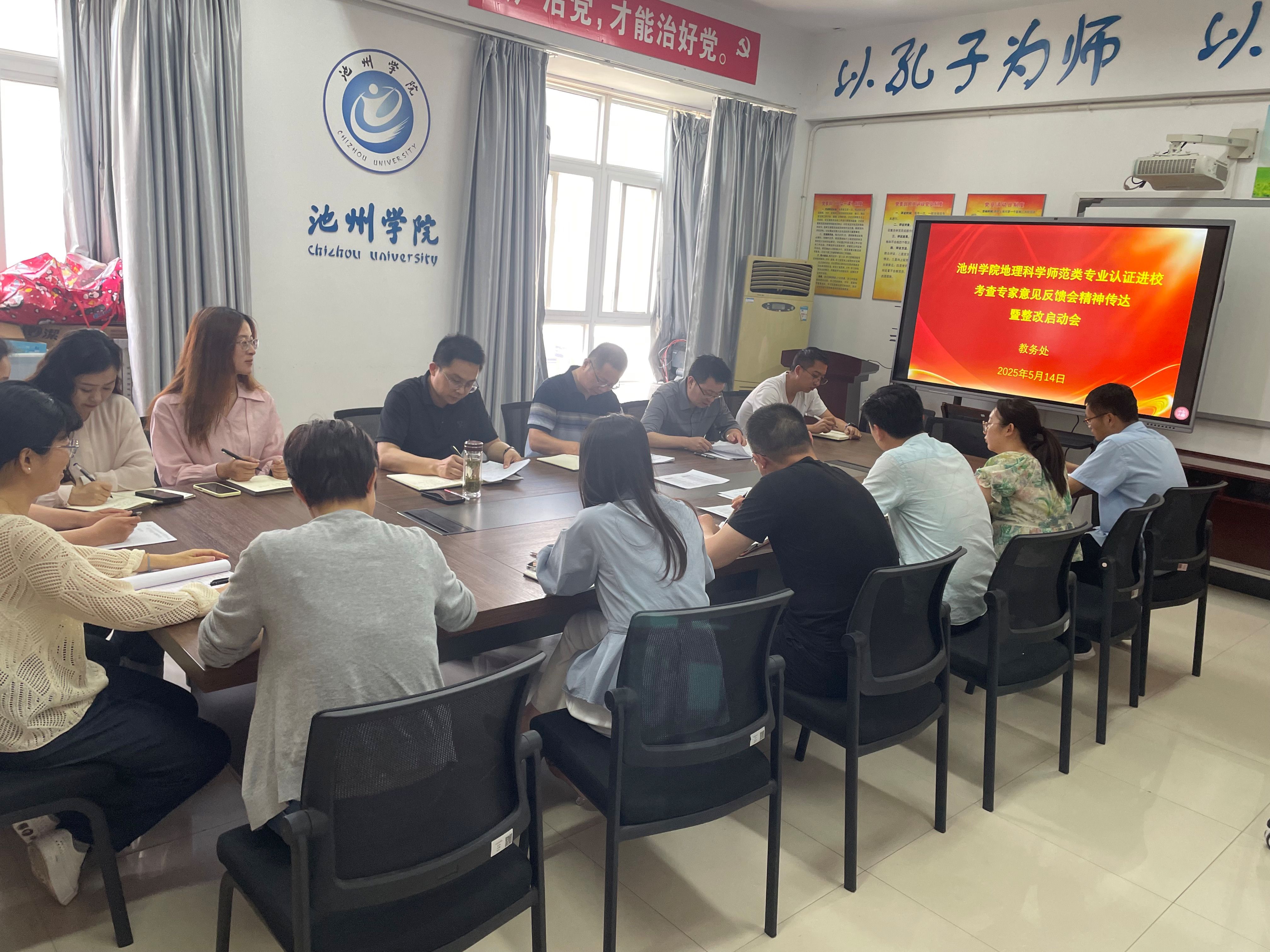 5月14日下午,教务处召开地理科学师范类专业认证进校考查专家意见反馈会精神传达暨整改启动会,教务处处长周恺组织会议,教务处全体人员参加会议。