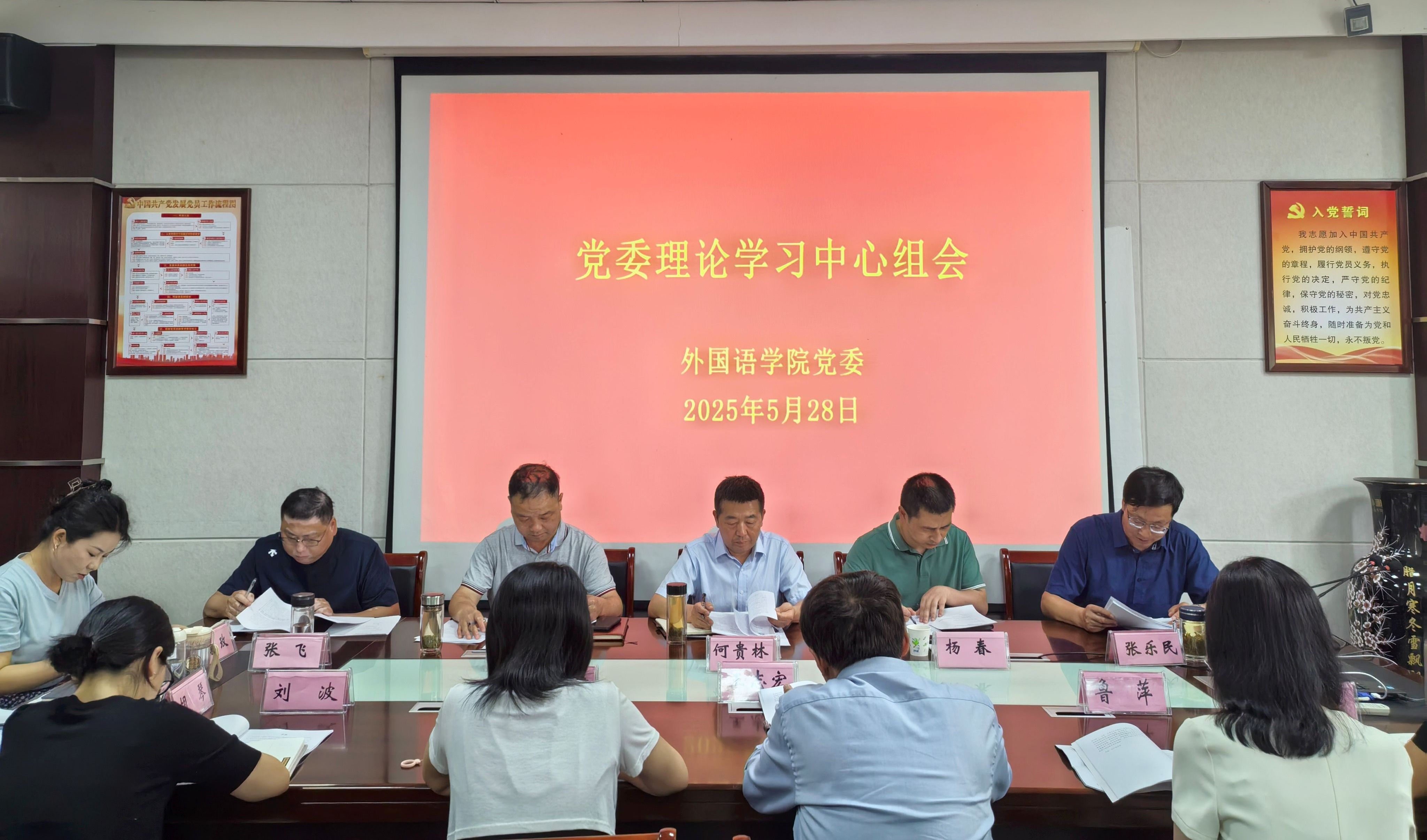 2025年5 月 28日下午,外国语学院举行党委理论学习中心组集中学习会,深入学习《党的十八大以来深入贯彻中央八项规定精神的成效和经验》《八项规定改变中国》等。校纪委副书记何贵林和组织部杨春老师列席旁听,会议由学院党委书记张乐民主持。