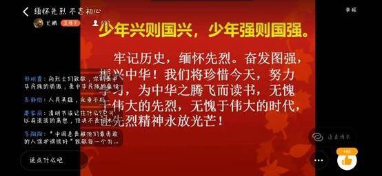 大学生廉洁协会通过钉钉群开展了“缅怀先烈、不忘初心”线上直播活动,组织同学为疫情防控期间牺牲的烈士和逝世同胞默哀,近千名同学参与了此次直播活动。直播中,主讲人动情讲解夏明翰、刘胡兰、黄继光、董存瑞、邱少云等多位烈士的英雄事迹。同学们纷纷感言,抒发“不忘历史、开创未来”的家国情怀。