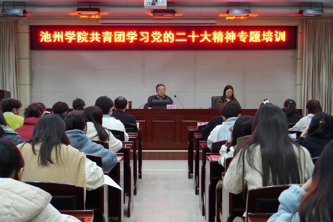 11月16日下午,党委委员、副院长阳光宁为世界杯官网第二十五期青年马克思主义者培养工程培训班作党的二十大精神专题报告,世界杯官网各级专兼职团干部和青马班全体学员聆听了报告会。
