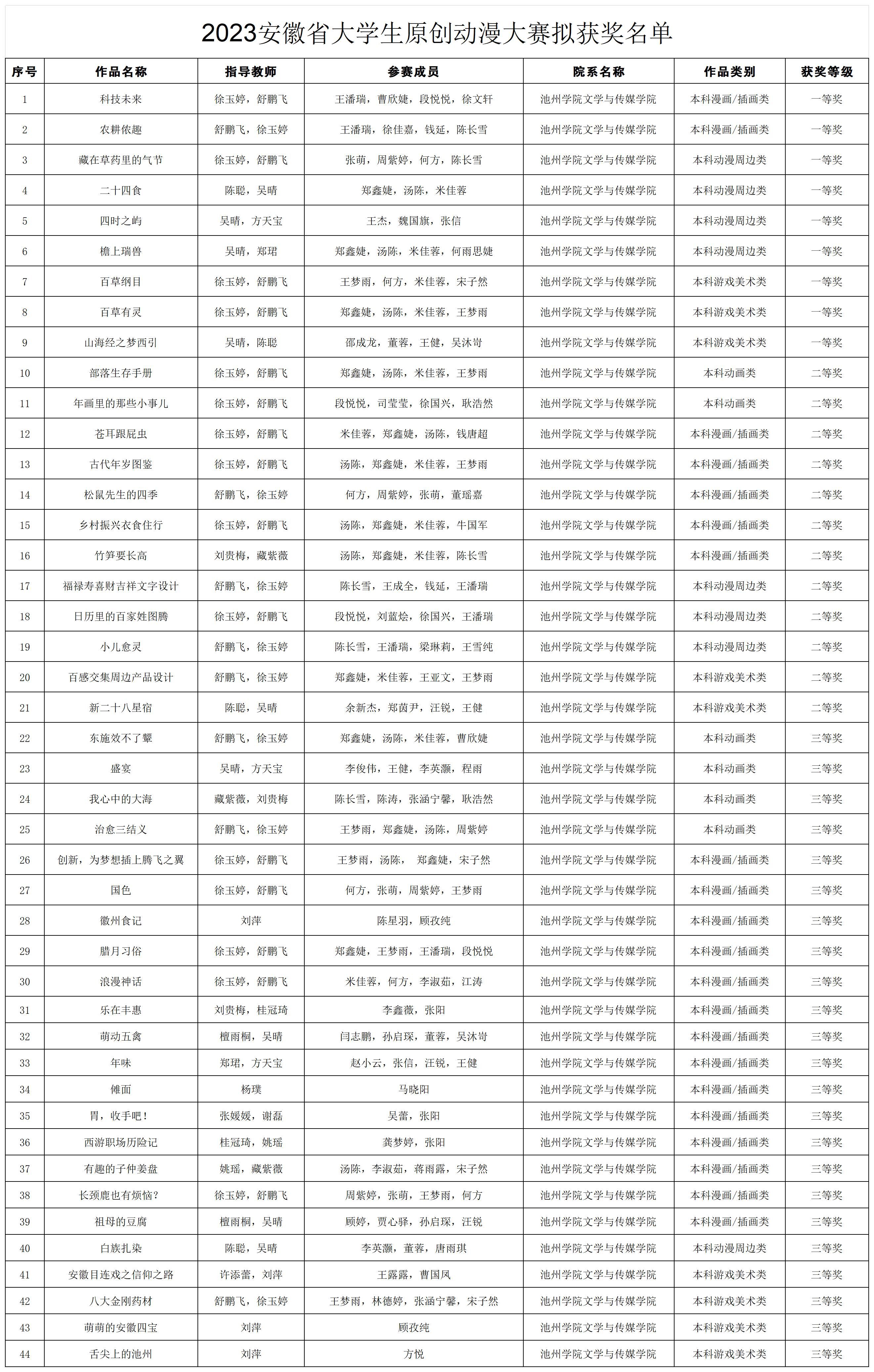 4月18日,2023年安徽省大学生原创动漫大赛评选揭晓。世界杯官网文学与传媒学院报送的参赛作品共获一等奖9项、二等奖12项、三等奖23项,徐玉婷、吴晴、陈聪、舒鹏飞四位老师荣获优秀指导老师奖,学校被授予优秀组织单位奖。