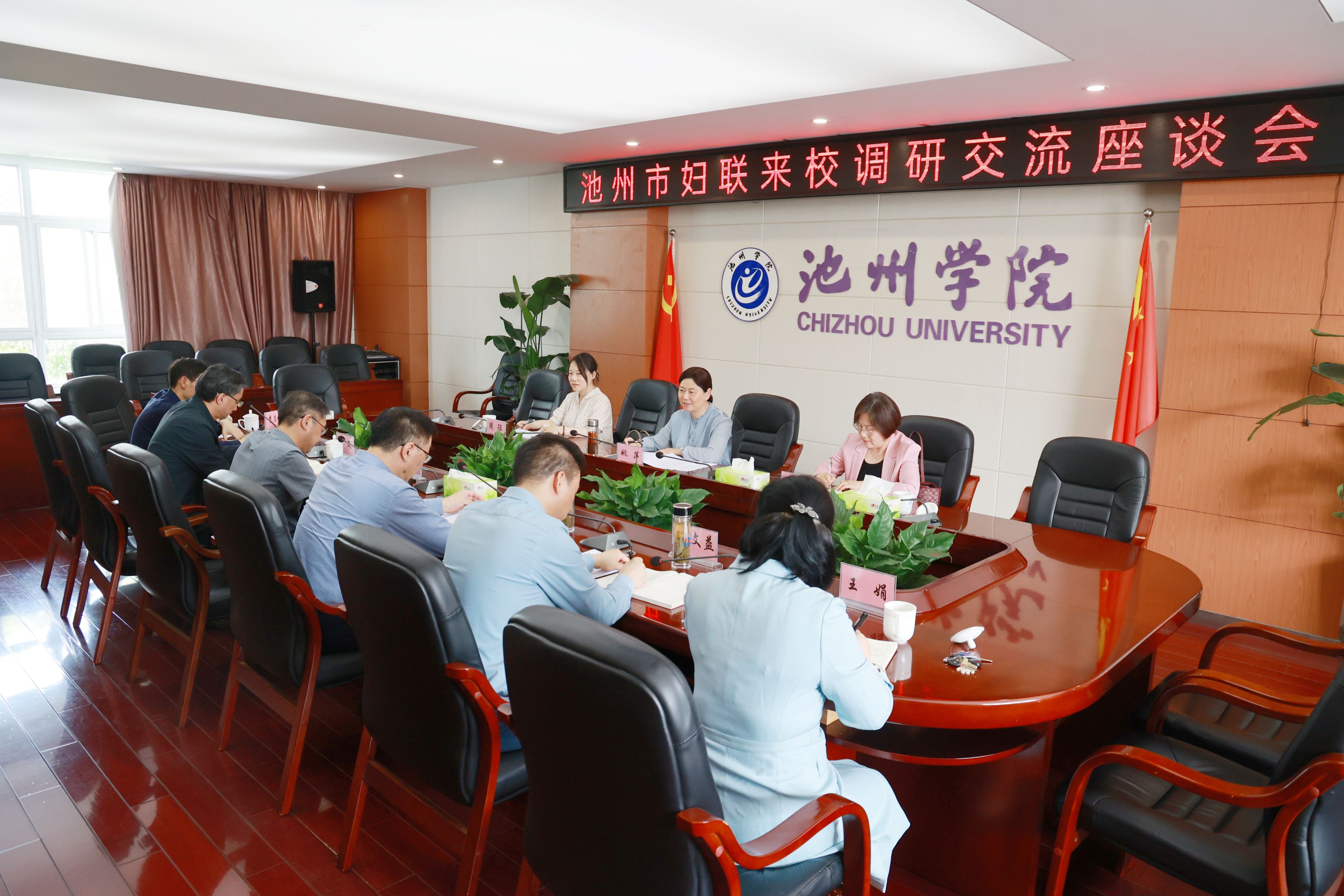 4月26日,池州市妇联党组书记、主席姚萍到世界杯官网调研交流。校党委书记王峰主持召开座谈会,党委副书记崔国发参加活动。