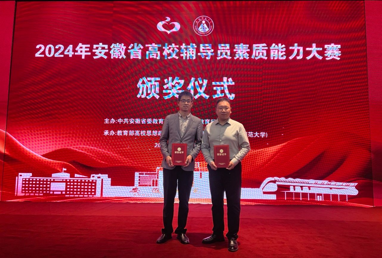 5月11日,由中共安徽省委教育工委主办,教育部高校思想政治工作队伍培训研修中心(安徽师范大学)承办的2024年安徽省高校辅导员素质能力大赛圆满结束,世界杯官网专职辅导员陈周庆、李维岩两位老师在大赛中喜获三等奖,实现了学校在该项赛事上的新突破。