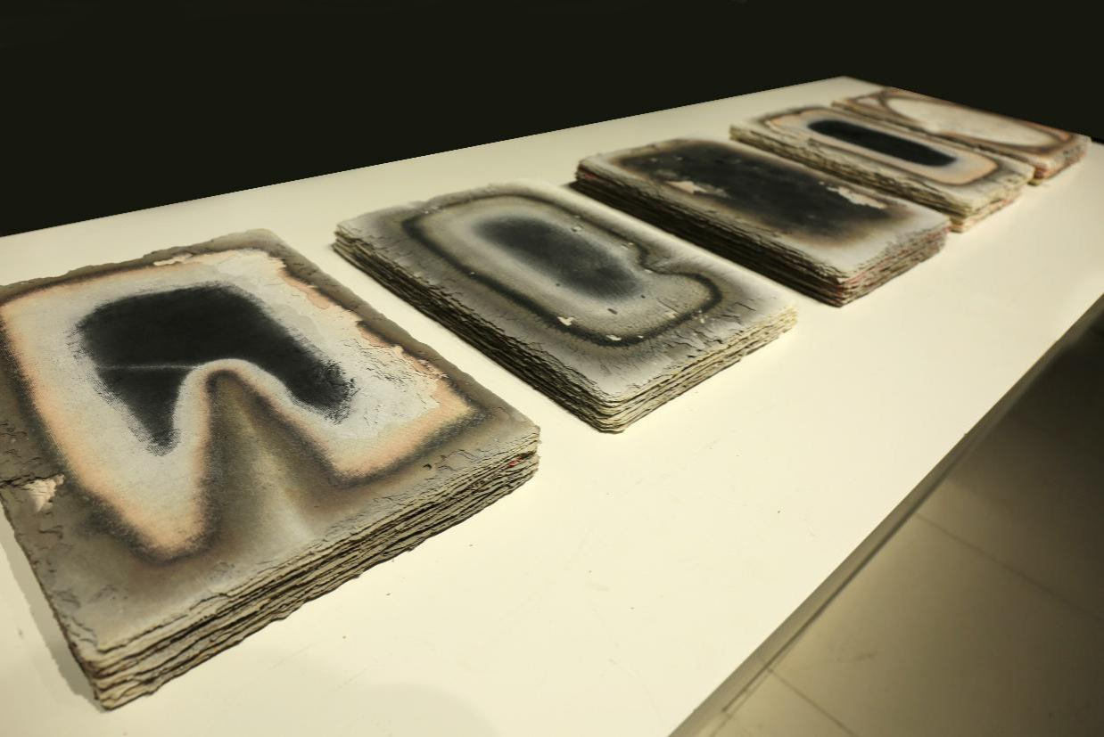 智超群的陶瓷艺术作品《时间的形状》表现了传统的文本形态与智能书写之间的一种对抗,探讨了人与时代的关系。作品以陶瓷材料为载体,发挥陶瓷的泥与火的语言特征,探索新的工艺表现与烧成方式,呈现材料的斑驳肌理和火焰烧成的痕迹,体现了独特的材料美与形式美。