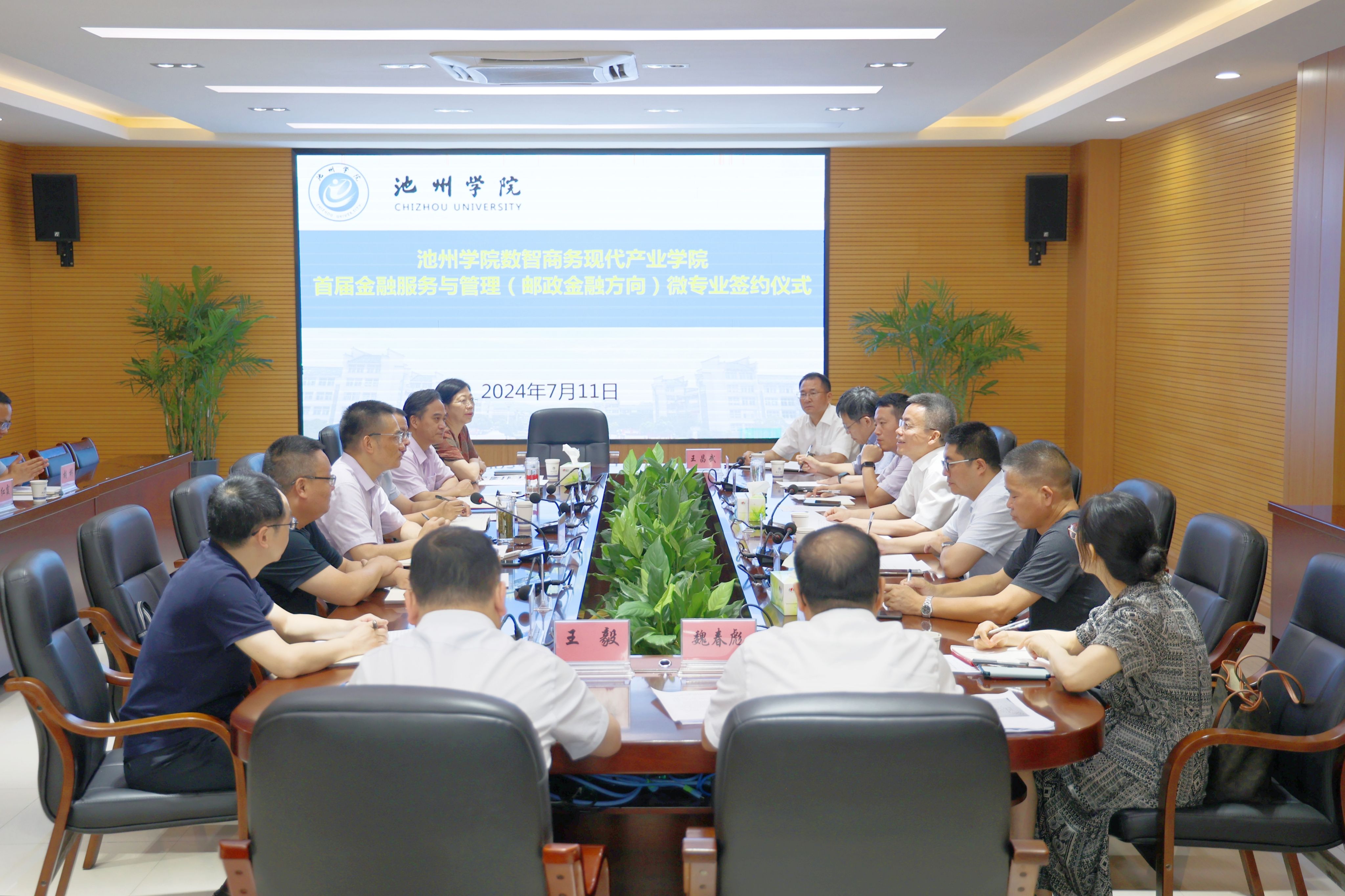 7月11日,学校举行首届金融服务与管理(邮政金融方向)微专业签约仪式。校党委委员、副院长吕刚,中国邮政集团有限公司安徽省分公司党委委员、副总经理刘文骏出席。池州市相关部门负责人,世界杯官网人事处、学生处、教务处、商学院以及石家庄邮电职业技术学院金融学院相关负责人参加会议。