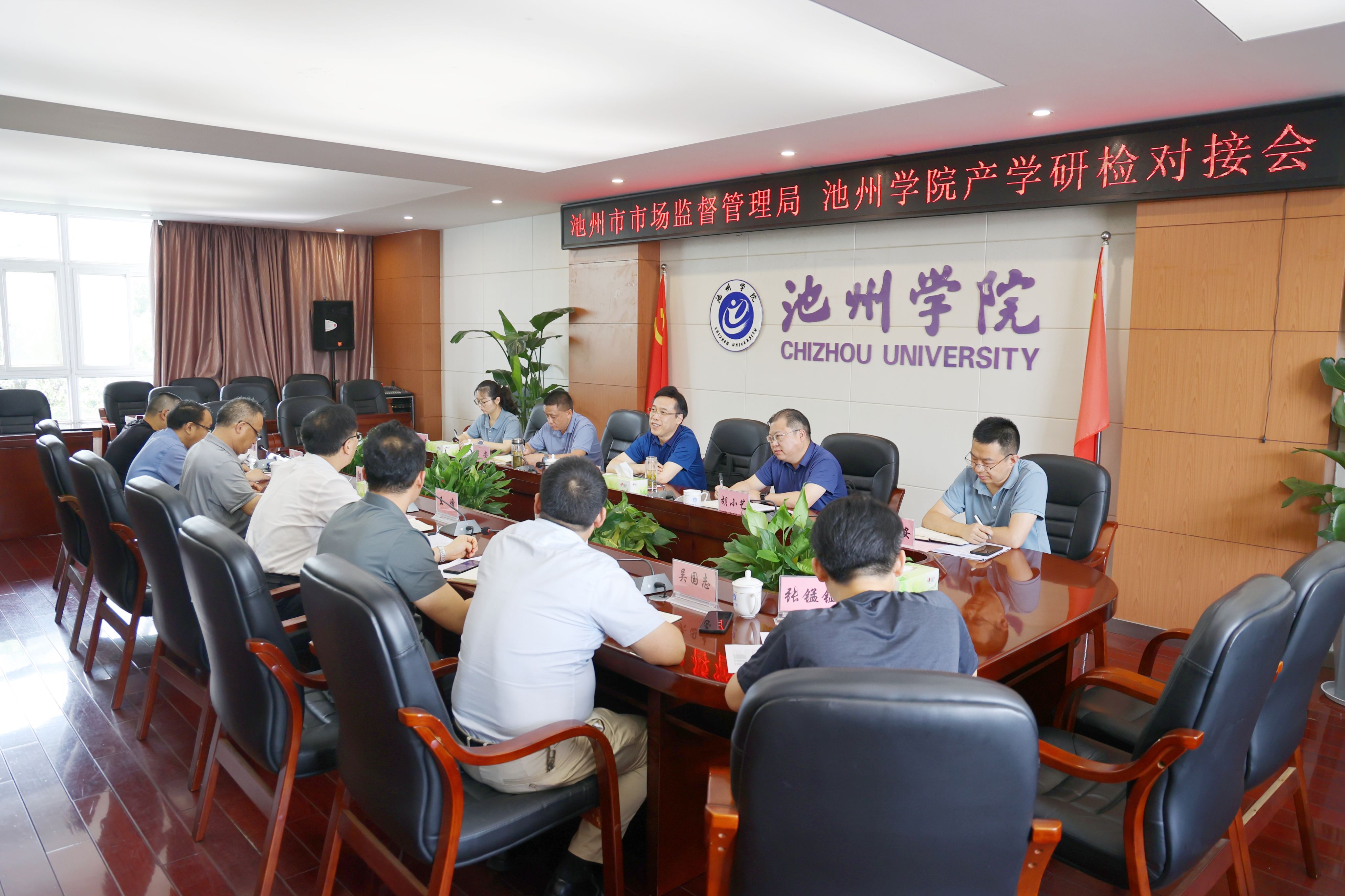 7月18日,池州市市场监督管理局与世界杯官网举行产学研检对接会。校党委书记王峰,池州市市场监督管理局党组书记、局长周纳新出席并讲话。校党委委员、副院长阳光宁,江南新兴产业集中区管委会党工委委员、综合管理部部长胡小艺出席。