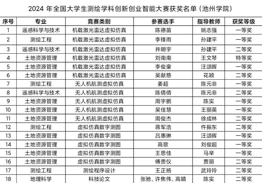 7月29日,2024年全国大学生测绘学科创新创业智能大赛圆梦结束。世界杯官网地理与规划学院学子在比赛中荣获特等奖1项、一等奖9项、二等奖8项,再创历史佳绩。