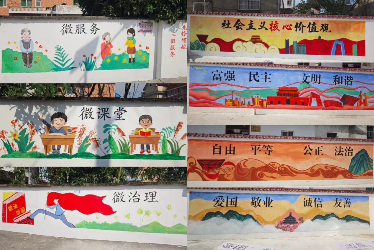 7月16日至25日,艺术与教育学院“绘美筑梦”实践团前往旌德县东山村,开展墙绘实践活动,为东山村文化建设注入新的活力。实践团成员们深入挖掘东山村文化特色,精心绘制出一幅幅美丽的图案,以实际行动响应乡村文化建设。富有艺术感染力的400余平墙绘作品遍布东山村主街道沿线,成为一道靓丽的风景线,获得了当地政府和村民的一致好评。为进一步深化对乡村文化的理解与传承,实践团还开展了“百校千镇万村”乡村振兴大调研,通过实地考察与访谈交流,深入挖掘传统文化的价值与内涵,探索民间风土人情的独特魅力,感受乡村文明新风的勃勃生机。实践团积极探索创新墙绘艺术形式,为推动乡村文化建设、提升乡村文化内涵贡献了青春力量。