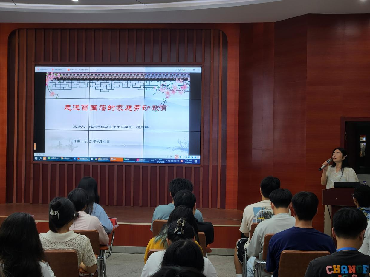 报告从劳致勤的习惯养成、劳促俭的生活理念、劳炼能的职业技能和劳养德的品德修养等四个方面展开,详细阐述了家庭劳动教育的现代价值和实践路径。互动环节中,大家就大学生劳动教育的重要性以及如何树立正确的劳动观等问题,进行了交流。