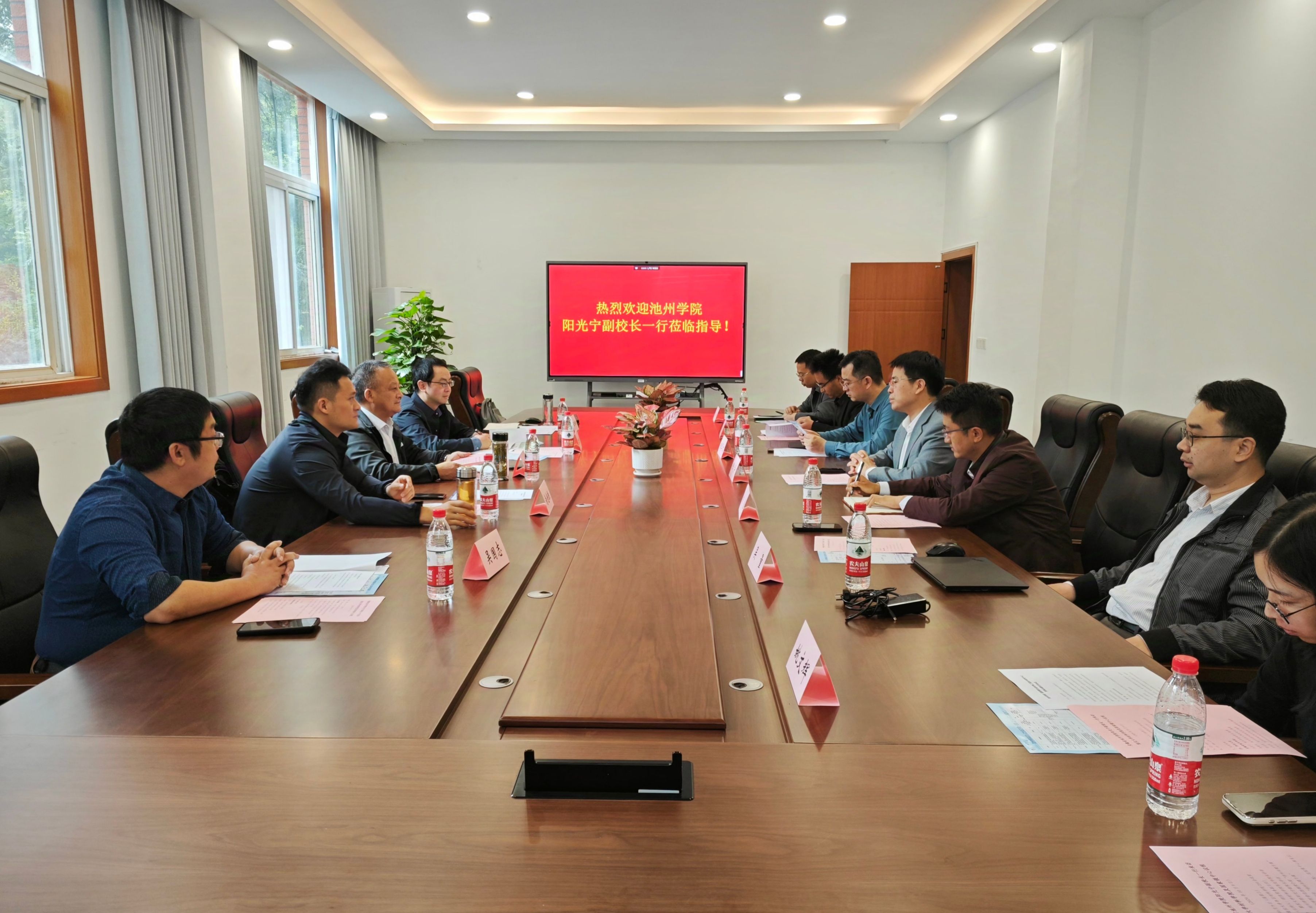 阳光宁对重庆大学材料科学与工程学院的热情接待表示感谢,并介绍了学校历史沿革、建设发展等情况,以及学科建设、人才培养等方面取得的成就。他表示,此次调研主要商讨双方学科共建合作,为后续双方签署学科共建协议做足准备,为学校硕士点的建设提供帮助。希望通过加强与重庆大学材料科学与工程学院交流合作,进一步推进学校学科建设蓬勃发展。
