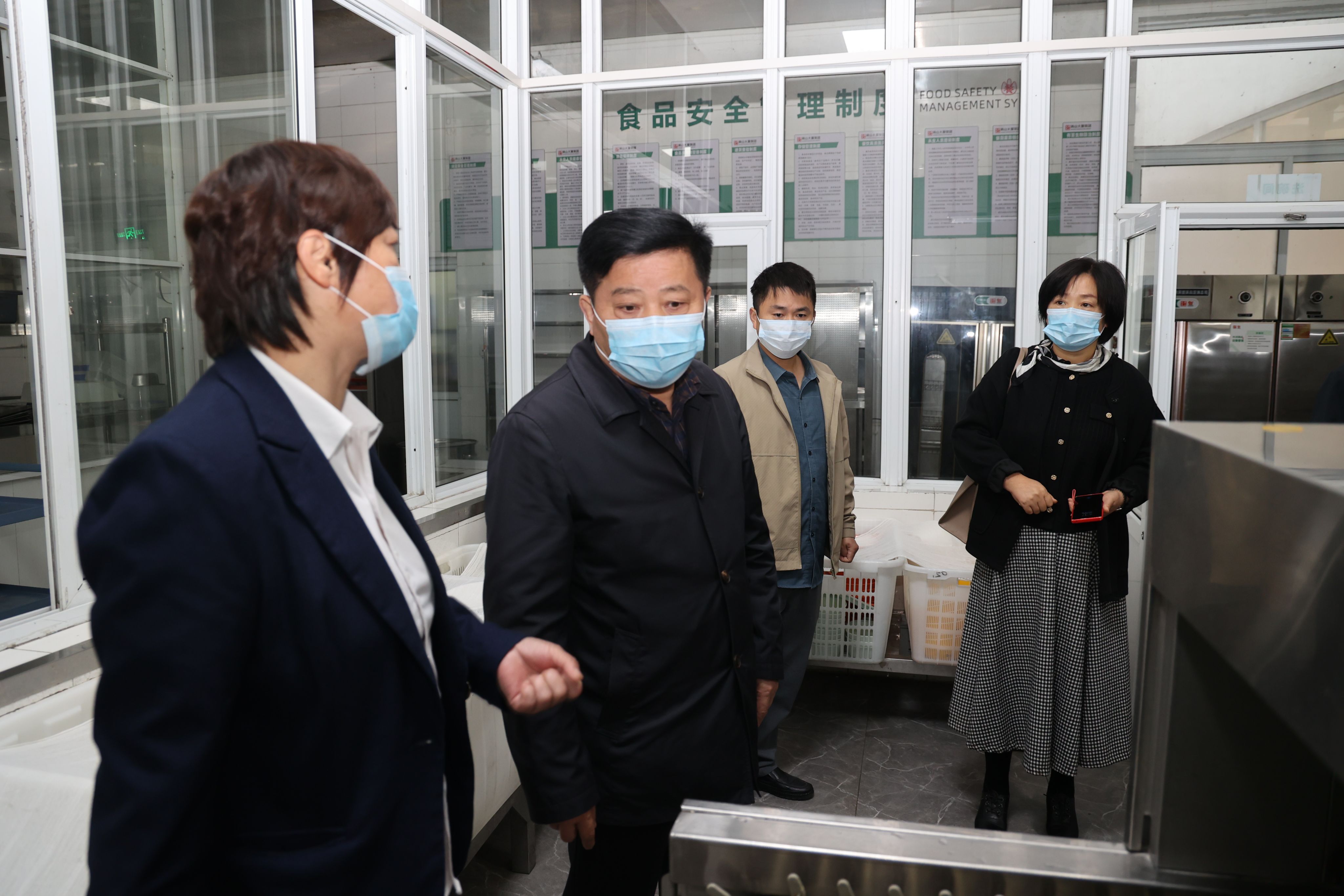 储修杰一行先后来到学生食堂和宿舍实地察看了解学校安全情况。在第三食堂,储修杰一行仔细检查了食堂的食品仓库、操作加工区、食材质量、食品留样等情况,对食堂的环境卫生、人员管理、规范操作、原料进货、成品、半成品规范存放、餐具消毒等工作进行了指导。在学生宿舍,储修杰一行和学生深入交谈,了解学生日常安全用电常识教育情况,并对住宿条件和重点部位安全隐患进行了检查。