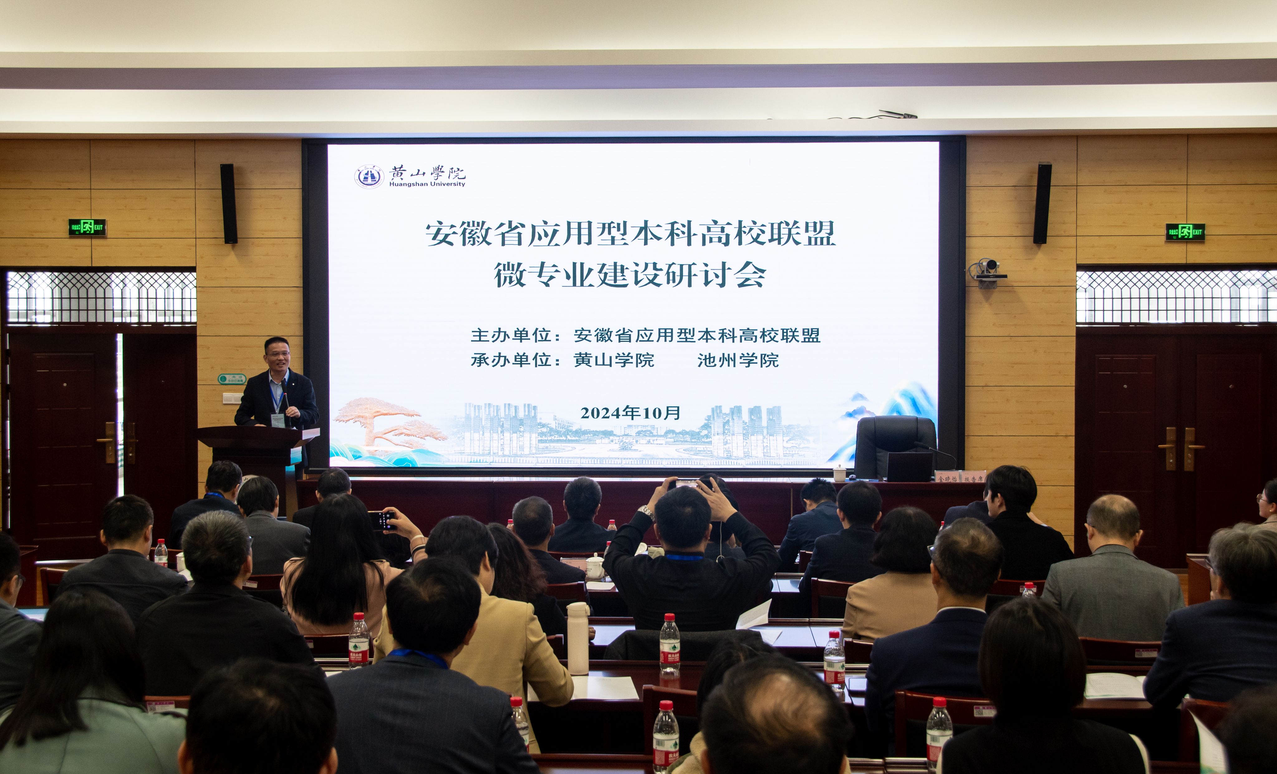 10月25日,安徽省应用型本科高校联盟微专业建设研讨会在黄山学院举行。省委教育工委委员、省教育厅副厅长储常连出席会议并讲话。省教育厅高教处、省应用型本科高校联盟秘书处、联盟各高校领导和嘉宾等参加会议。校党委委员、副校长吕刚出席会议。