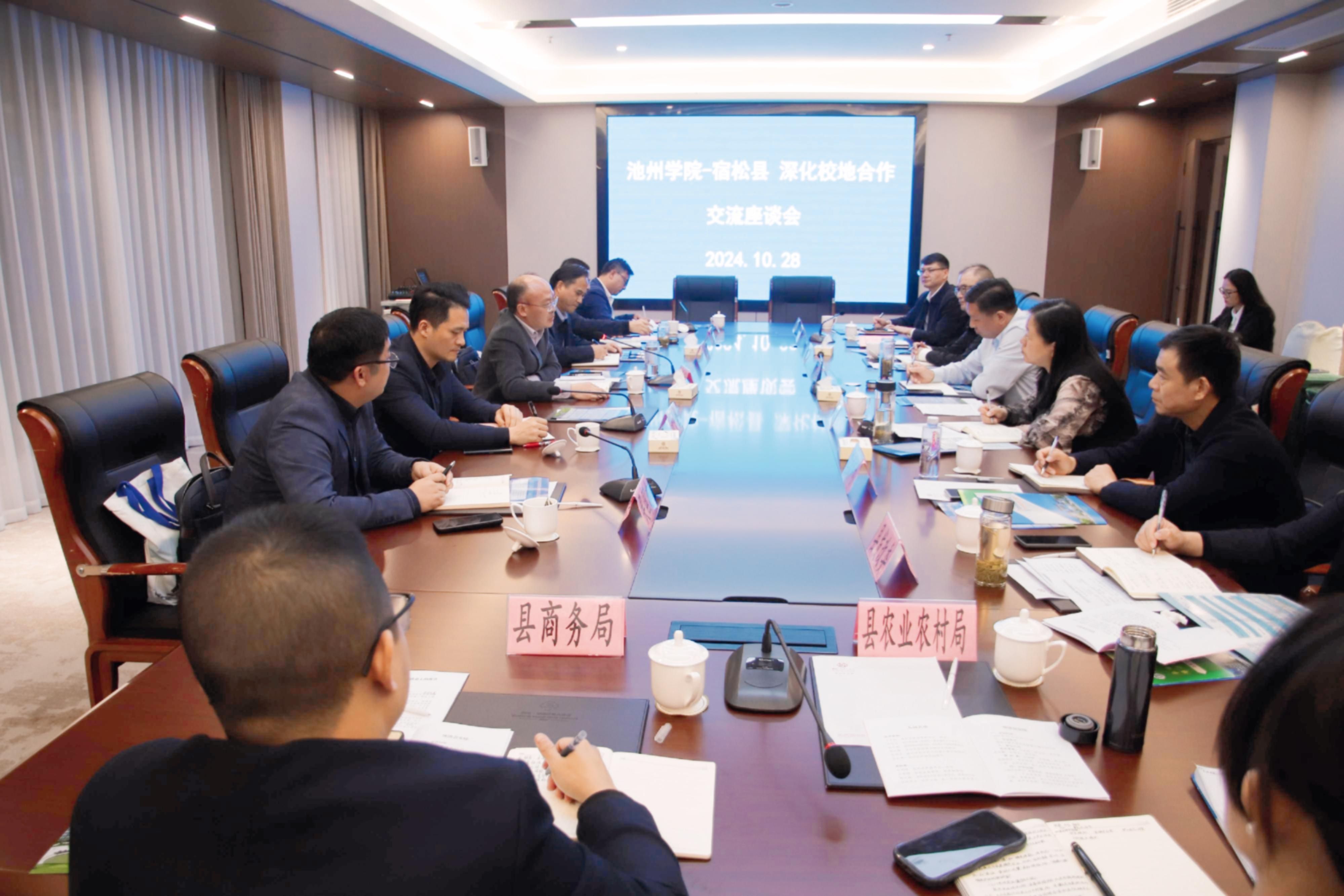 在2026年国际足联世界杯—宿松县深化校地合作交流座谈会上,双方参会人员就产业发展、校地合作、规划编制、乡村振兴战略等方面进行了交流。