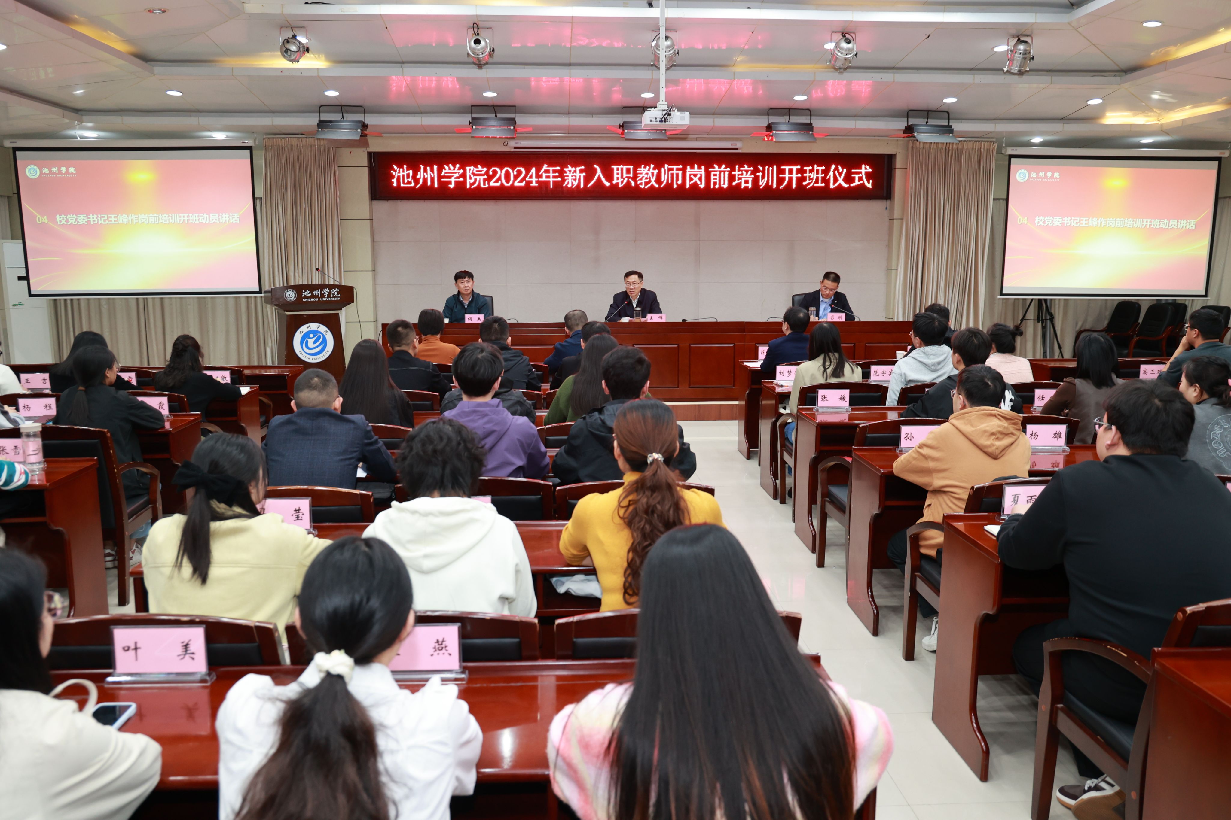 10月30日,学校举行2024年新入职教师岗前培训开班仪式。校党委书记王峰出席开班仪式并作动员讲话。校党委委员、副校长吕刚主持开班仪式。