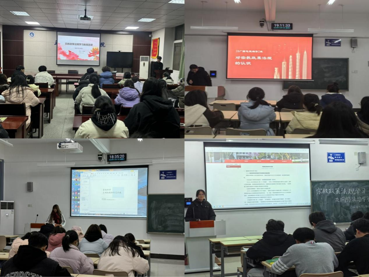 开展主题团日活动。文学与传媒学院2024级广播电视编导2班团支部开展“坚定理想信念,争做有为青年”主题团日活动,集中观看有关宗教政策法规和网络法治宣传教育片,深入学习我国的宗教政策和法律法规,加强警示教育,强化法治思维。大数据与人工智能学院2024级数据科学与大数据技术班团支部开展“凝聚青春力量,筑牢信仰之基”主题团日活动,通过优秀团员代表领学《中国共产主义青年团章程》及宗教政策法规等文件、重温入团誓词、齐唱团歌、知识问答等多种形式,巩固学习成果,进一步提高团员青年思想政治素养,提升团支部的凝聚力和战斗力。