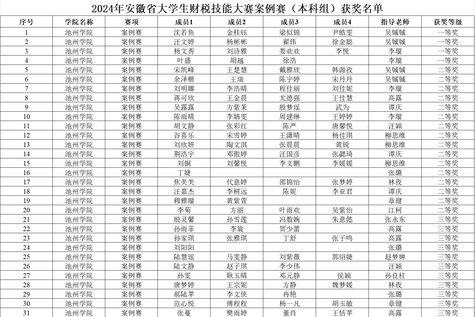 12月28日,2024年安徽省大学生财税技能大赛(案例赛)评审结果公布。本科组案例赛全省共1140支队伍参加,商学院(法学院)团队荣获一等奖4项、二等奖16项、三等奖11项,其中沈若鱼团队案例作品获评全省第3名,吴铖铖、李璇老师荣获“优秀指导教师”称号。