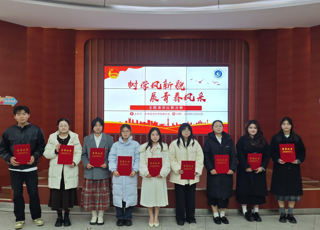 12月20日下午,学校在大学生活动中心举办“树学风新貌,展青春风采”主题演讲比赛决赛。本次比赛经自主报名、各二级学院选拔推荐,共有11位选手进入决赛。选手们紧密围绕大赛主题,结合自身学习经历和感悟,从不同角度讲述了如何践行优良学风,充分展现了青年学子拼搏向上的精神风貌。经激烈角逐,最终文学与传媒学院潘琪同学获一等奖,大数据与人工智能学院张彤同学、地理与规划学院贾静雯同学获二等奖,外国语学院洪璇等三位同学获三等奖,体育学院熊石林等五位同学获优秀奖。