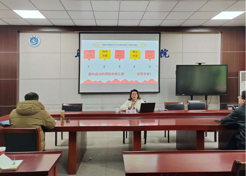 1月14日下午,安徽医科大学医学人文研究中心杨芳教授作题为“哲学社会科学项目选题和论证”的专题讲座,从“哲学社会科学课题类型和来源”“哲学社会科学项目的基本结构”“省级以上哲学社科项目的论证”三个方面,对哲学社会科学项目申报书的撰写进行了深入分析和详尽的经验分享。教师们就自己在项目选题和论证过程中遇到的困惑与杨芳教授进行探讨和交流。