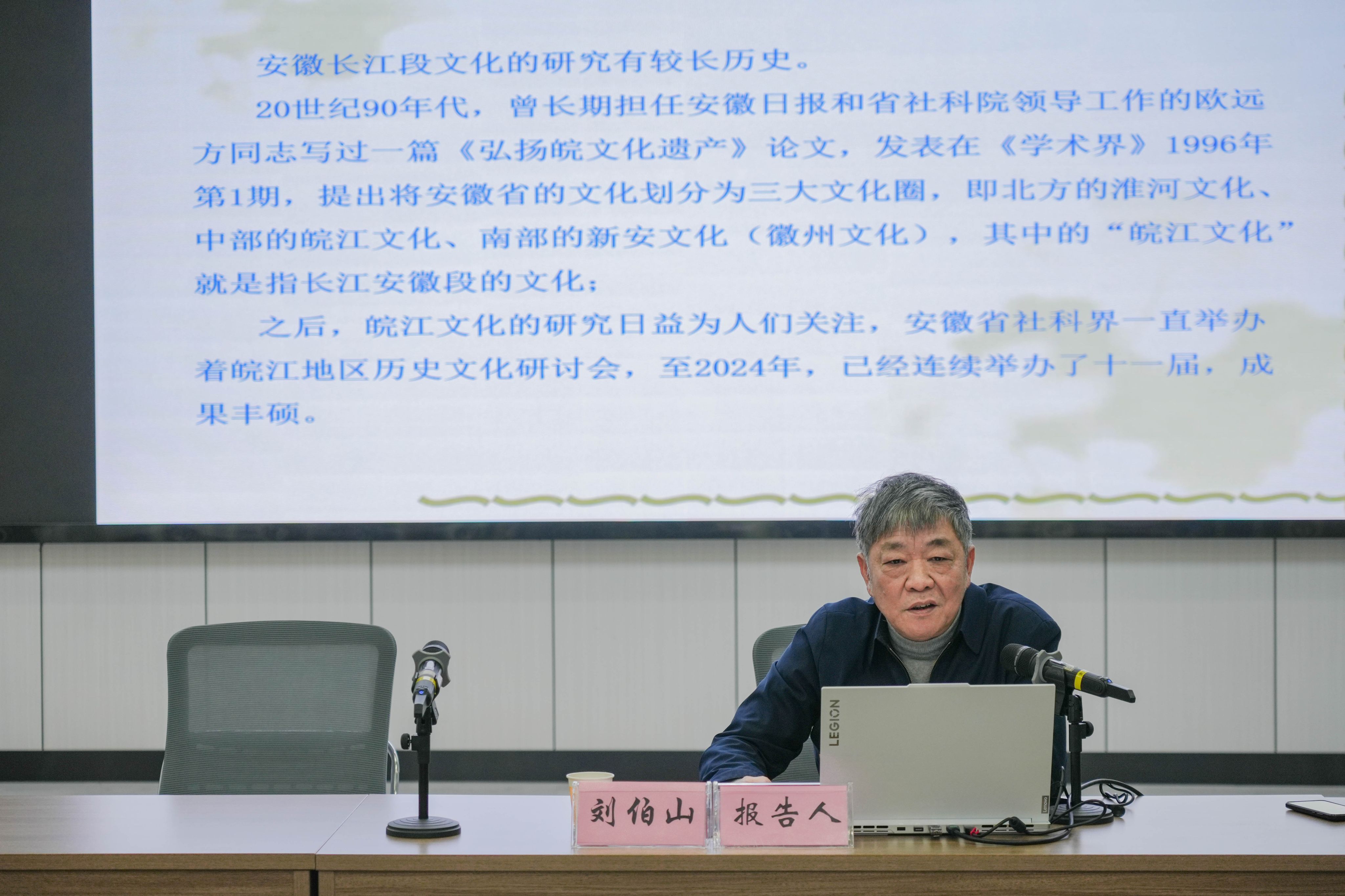 刘伯山聚焦八百里长江的安徽段,从古老的历史遗迹到独特的民俗风情,全面梳理了该区域丰富多样的文化资源,深入解读了长江文化的安徽标识,生动展现了长江文化的安徽特色与价值。在研究方法与选题方向的讲解上,他结合自身丰富的研究经验,分享了一系列具有创新性和可行性的选题建议,传授了撰写报告的技巧和要点,为师生们的学术探索指明了方向。