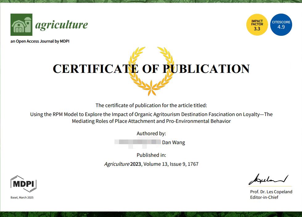 王丹在Agriculture期刊上发表论文