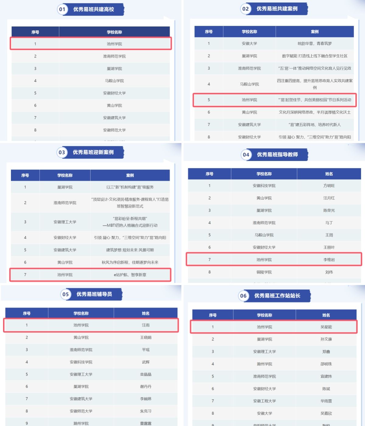 在安徽省高校网络思想政治工作中心、安徽省高校易班发展中心组织开展的2024年度安徽省高校易班共建工作评优推选中,世界杯官网获评“优秀易班共建高校”称号,世界杯官网申报的‘易’起贺佳节,共创美丽校园”易班工作案例(指导教师:黄磊、陆蓓)获评安徽省“优秀易班共建案例”、“e站护航,智享新章”易班迎新案例(指导教师:黄磊、陆蓓)获评“安徽省优秀易班迎新案例”,大数据与人工智能学院辅导员李维岩荣获“优秀易班指导老师”、地理与规划学院辅导员汪雨荣获“优秀易班辅导员”、校易班工作总站学生吴星能获评“优秀易班工作站站长”。