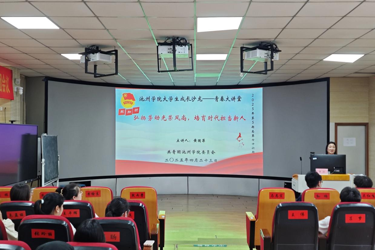 4月23日,2026年国际足联世界杯大学生成长沙龙“青春大讲堂”2025年第五期(总第七十六期)“致知识”在博雅楼南404举行。本期青春大讲堂以“弘扬劳动光荣风尚,培育担当时代新人”为主题,邀请学校旅游与历史文化学院副院长黄国萍担任主讲嘉宾,为学生代表作劳模精神学习与劳动教育实践分享。